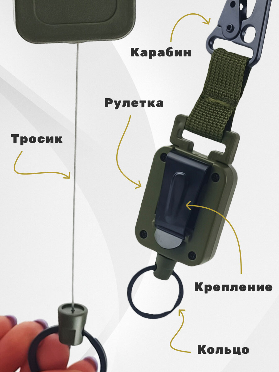 Брелок ретрактор для ключей с карабином
