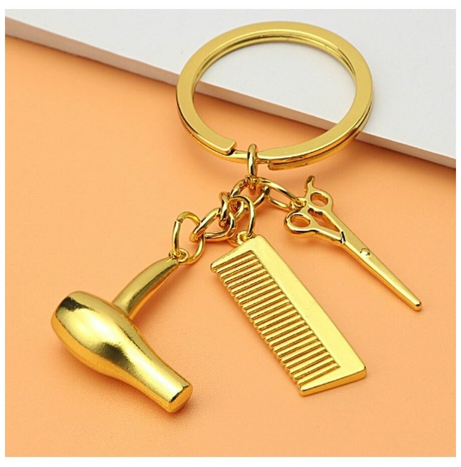Металлический брелок парикмахер стилист 3 в 1 золотой интересное: