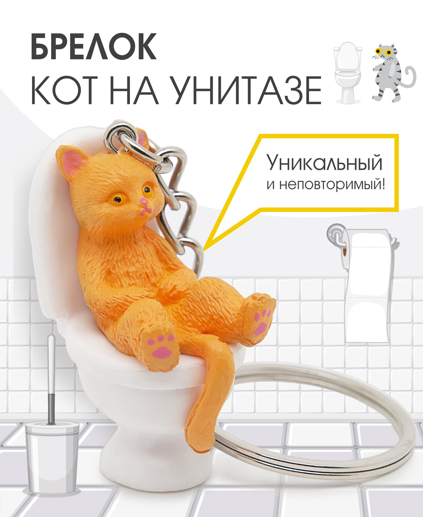 СохранитьБрелок "Кот на унитазе" рыжий интересное: