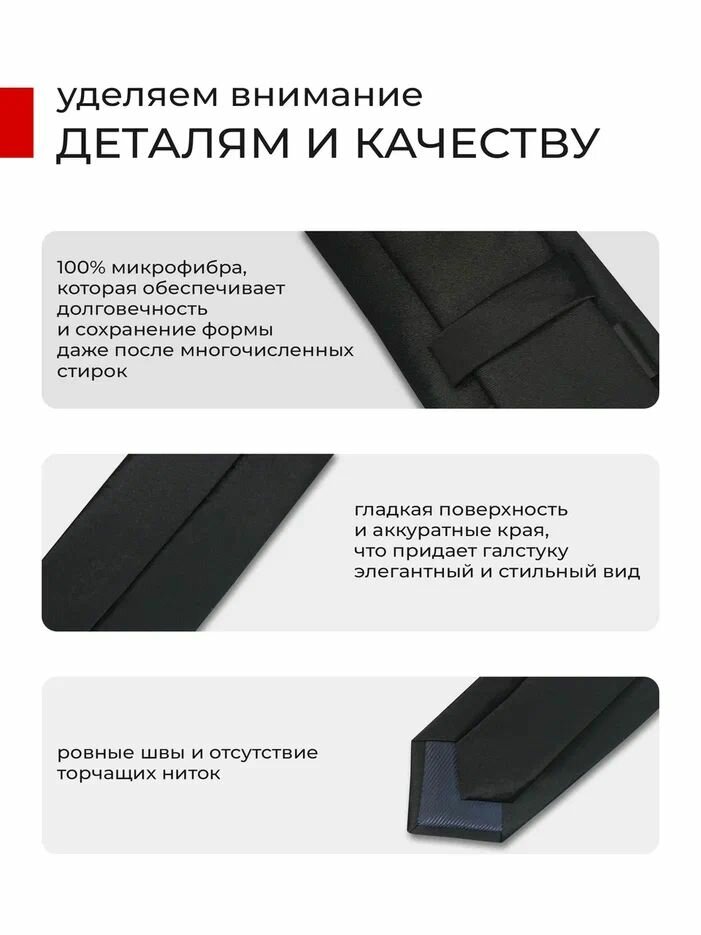 | Дополнительная информация | Галстук можно стирать руками, отпаривать отпаривателем, однако гладить галстук утюгом нельзя. |