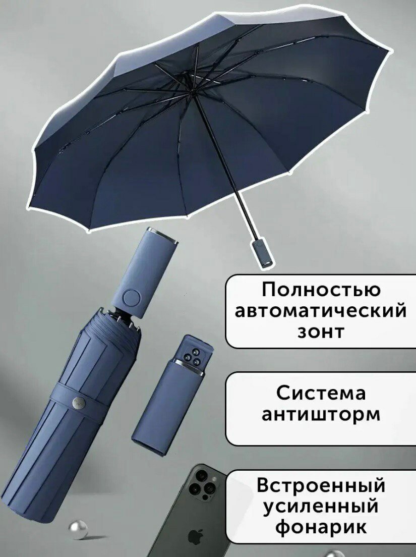 Смарт-зонт ZUODU, автомат, купол 105 см., 10 спиц, система «антиветер», с фонариком, синий интересное: