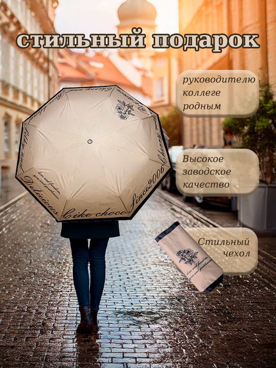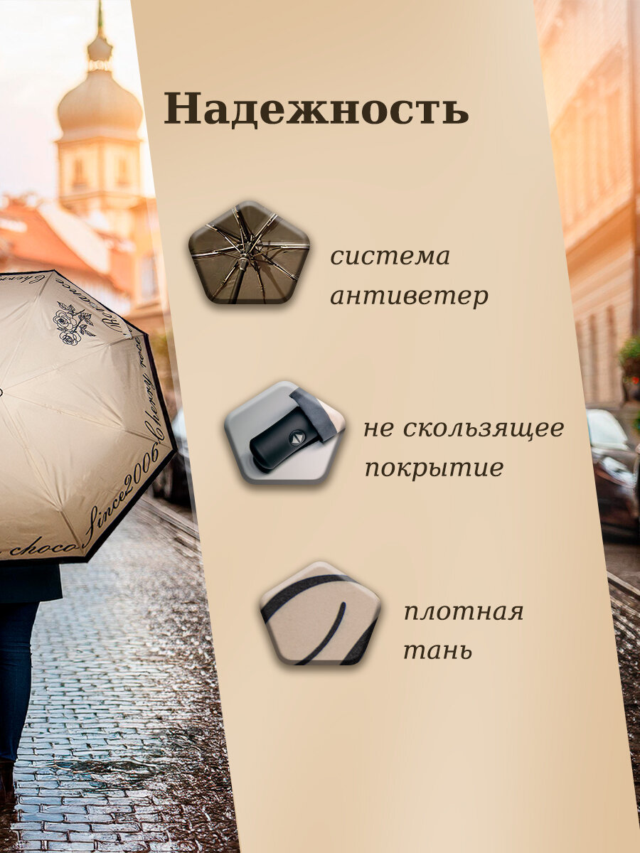 Зонт "Три Слона" женский №310-5, купол D=103 см, 10 спиц, суперавтомат бежево-черный