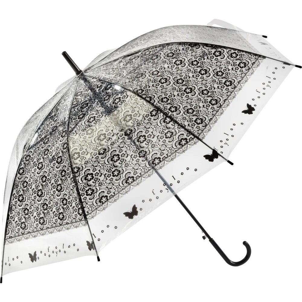 Зонт-трость полуавтомат "Прозрачный", диаметр купола 90 см, длина 71 см, цвет принта черный