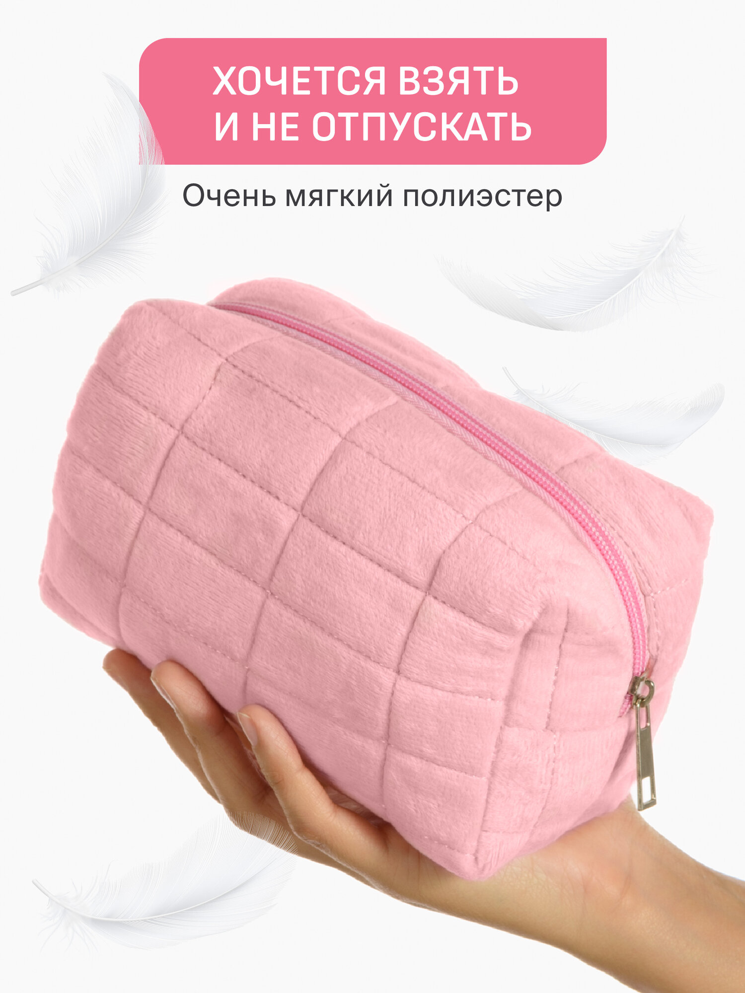 Косметичка плюшевая маленькая REVOLUT, 17х9х11 см, розовая интересное: