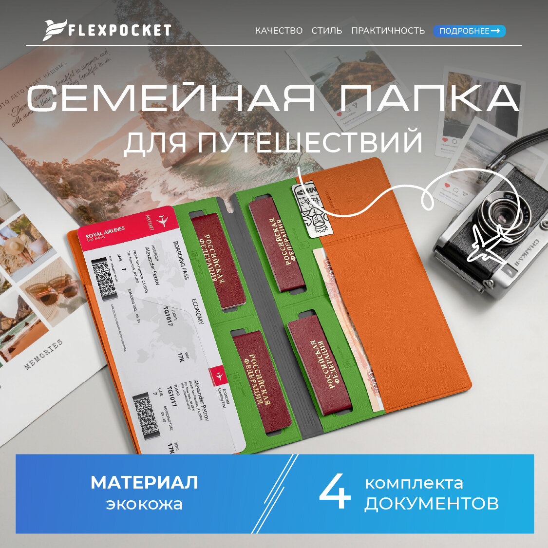 Ниже Вы можете прочитать отзывы на Органайзер для путешествий семейный Flexpocket / Турконверт / Авиахолдер / Папка для документов, загранпаспорта, цвет Оранжевый, ознакомится с подробными характеристиками, посмотреть интересные обзоры и фотографии на Органайзер для путешествий семейный Flexpocket / Турконверт / Авиахолдер / Папка для документов, загранпаспорта, цвет Оранжевый.