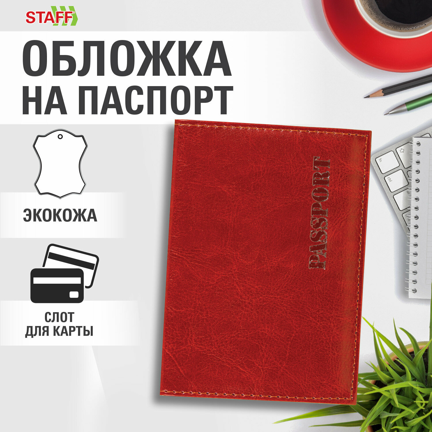 СохранитьОбложка на паспорт женская мужская, чехол для паспорта и документов, эко кожа, красная, Staff Profit Passport, 238408 интересное:
