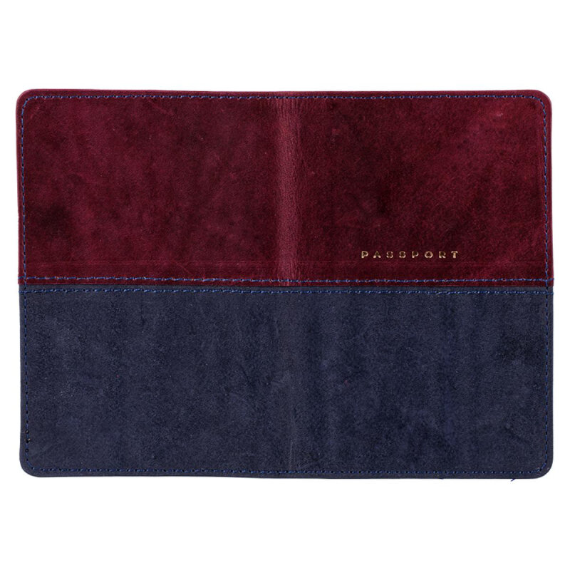 Обложка для паспорта OfficeSpace "Duo", кожа, бордо, синий, тиснение фольгой (311100)