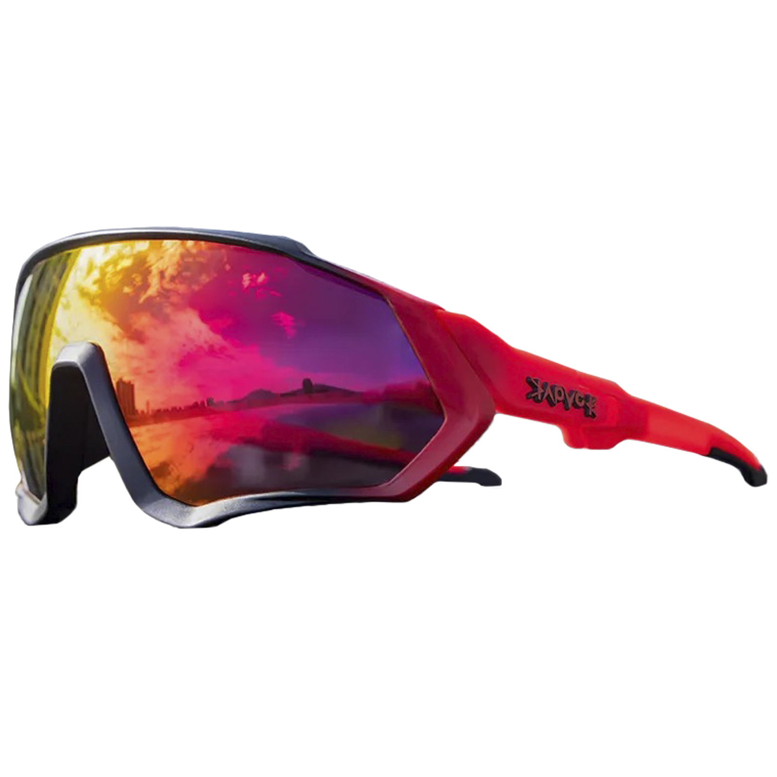 Очки спортивные солнцезащитные с защитой от ультрафиолета UV400, KAPVOE, цвет оправы черный с красной линзой