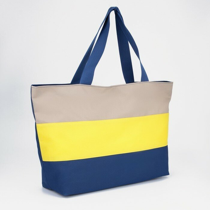 Купить Сумка пляжная на молнии, цвет синий/жёлтый/бежевый