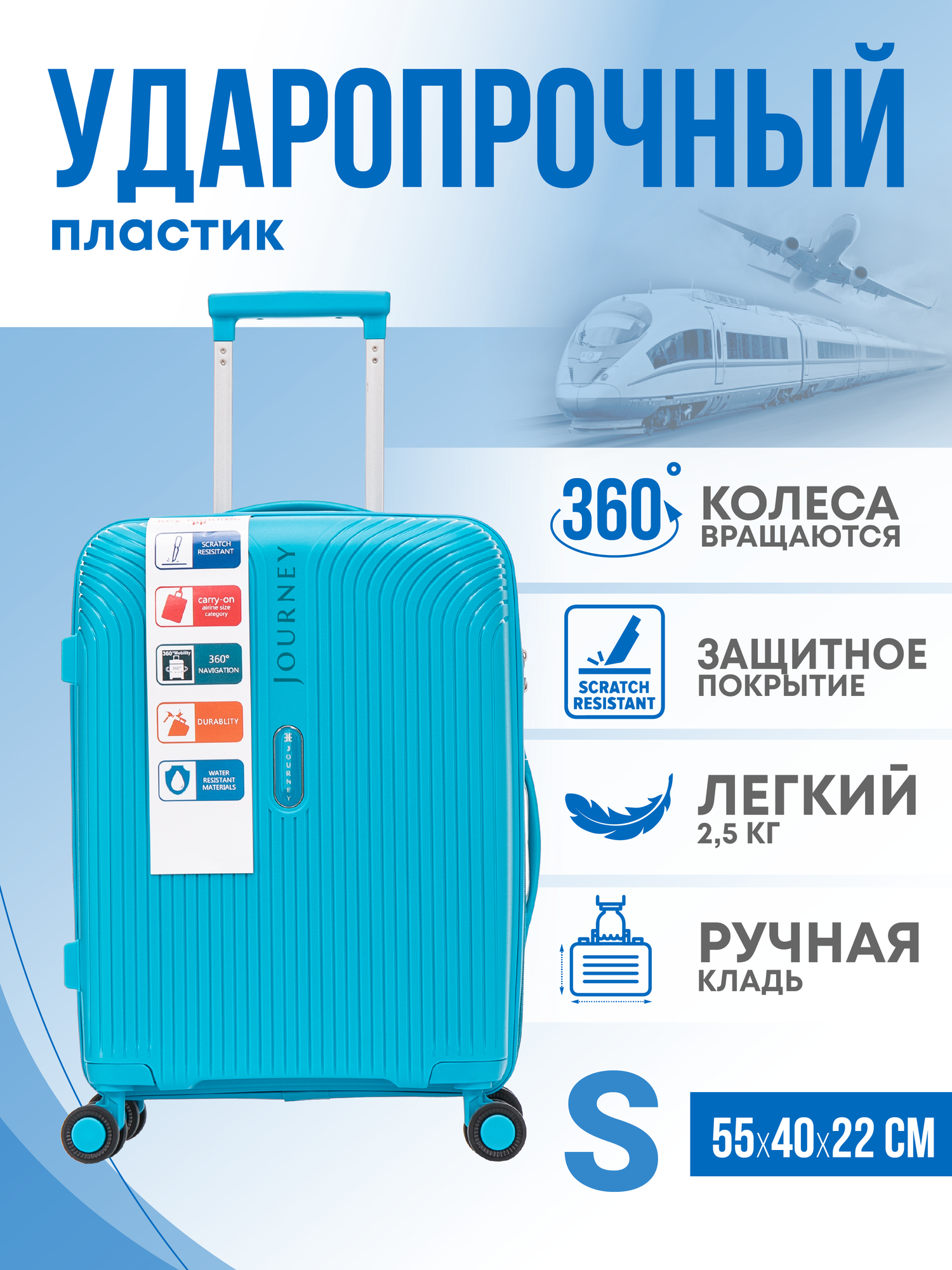 Купить Чемодан JOURNEY, полипропилен, прочный, износостойкий, водонепроницаемый, 43 л, размер S, Голубой