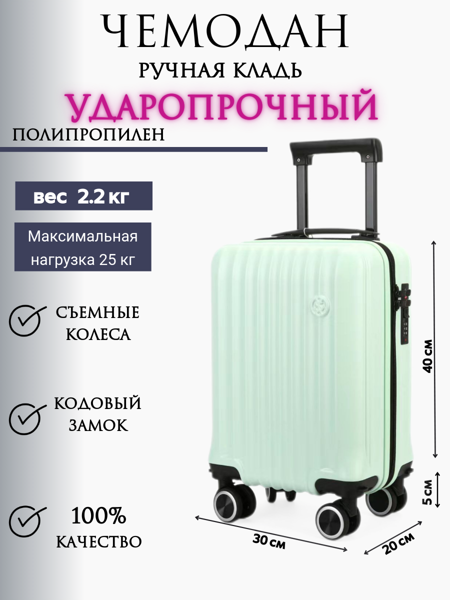 Купить Чемодан ручная кладь, съемные колеса, высота 40 см 823-1мята