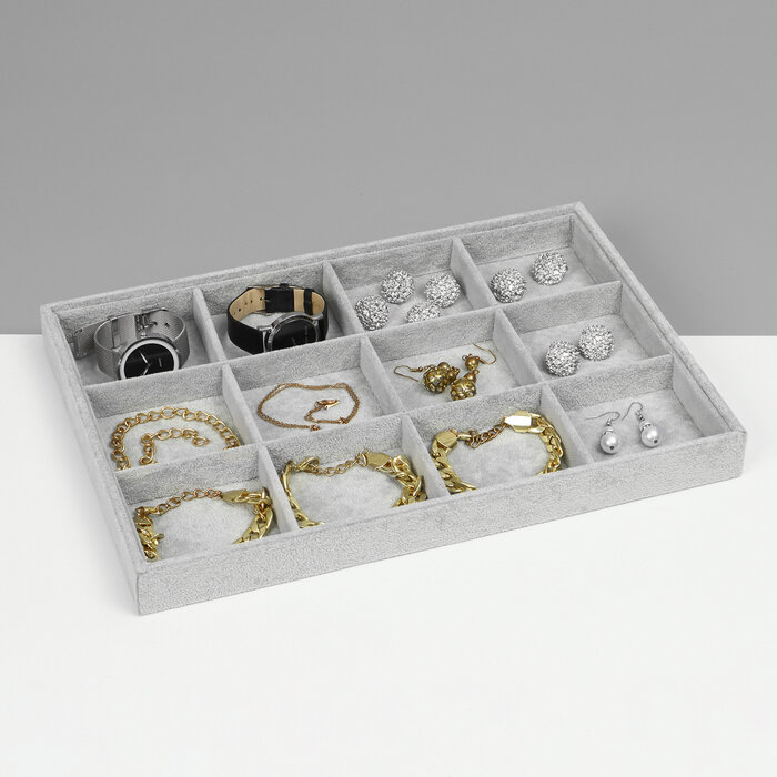 Подставка для украшений 12 ячеек, флок, 35×24×3, цвет серый