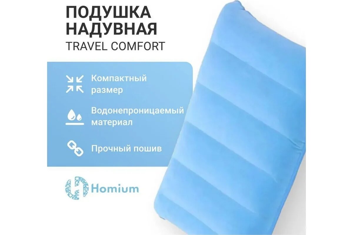 Подушка надувная дорожная Homium Travel Comfort, цвет голубой интересное: