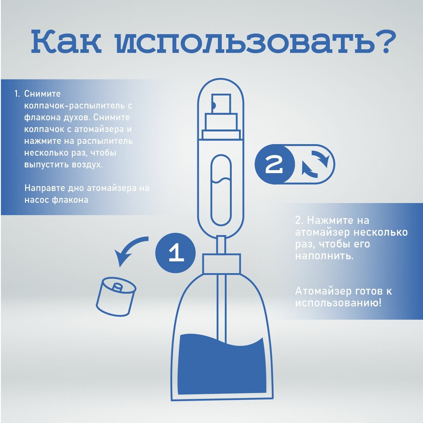| Подробная комплектация | Атомайзер выбранного Вами цвета с крышечкой и ниппелем для многократной заправки. |