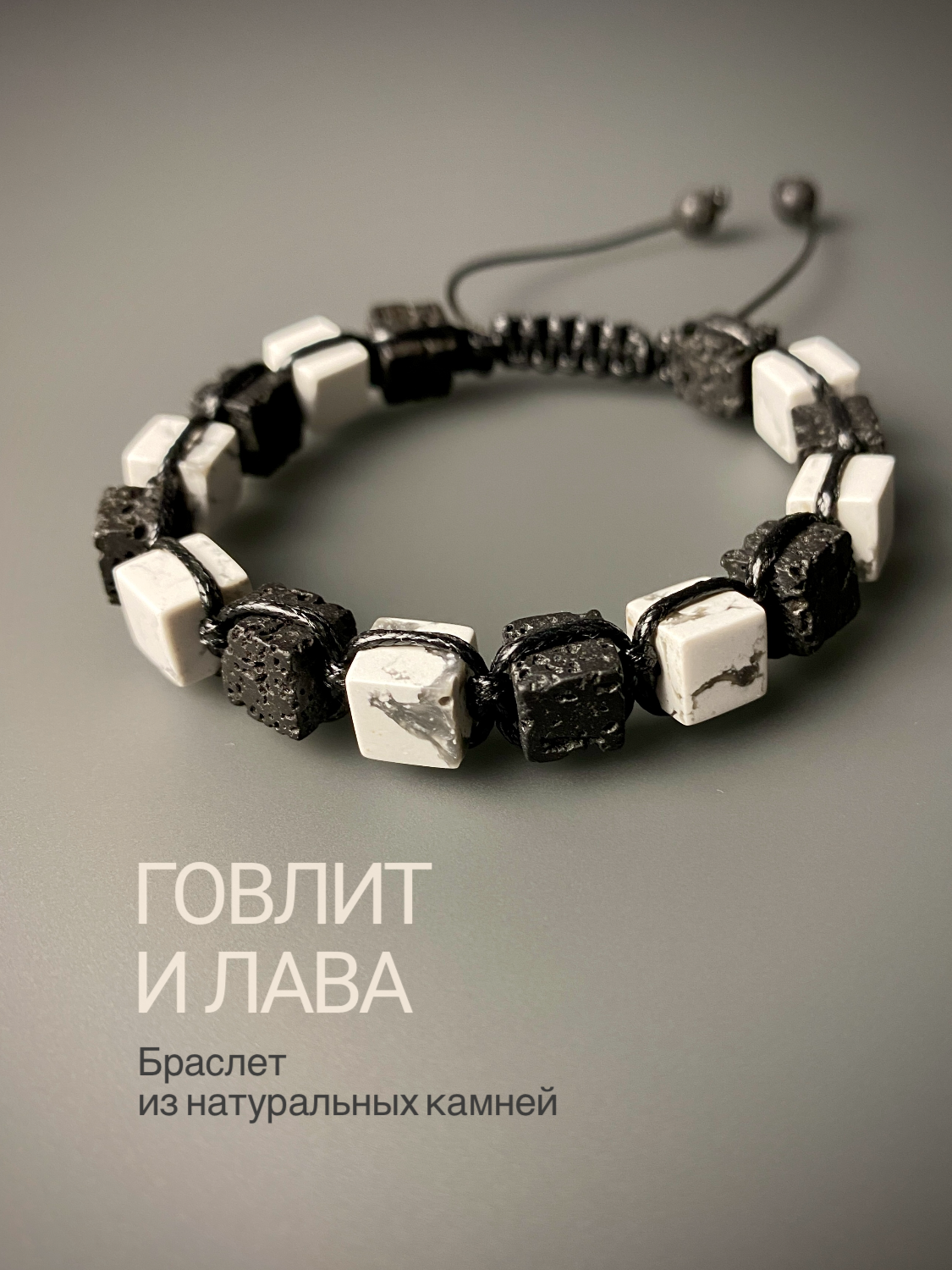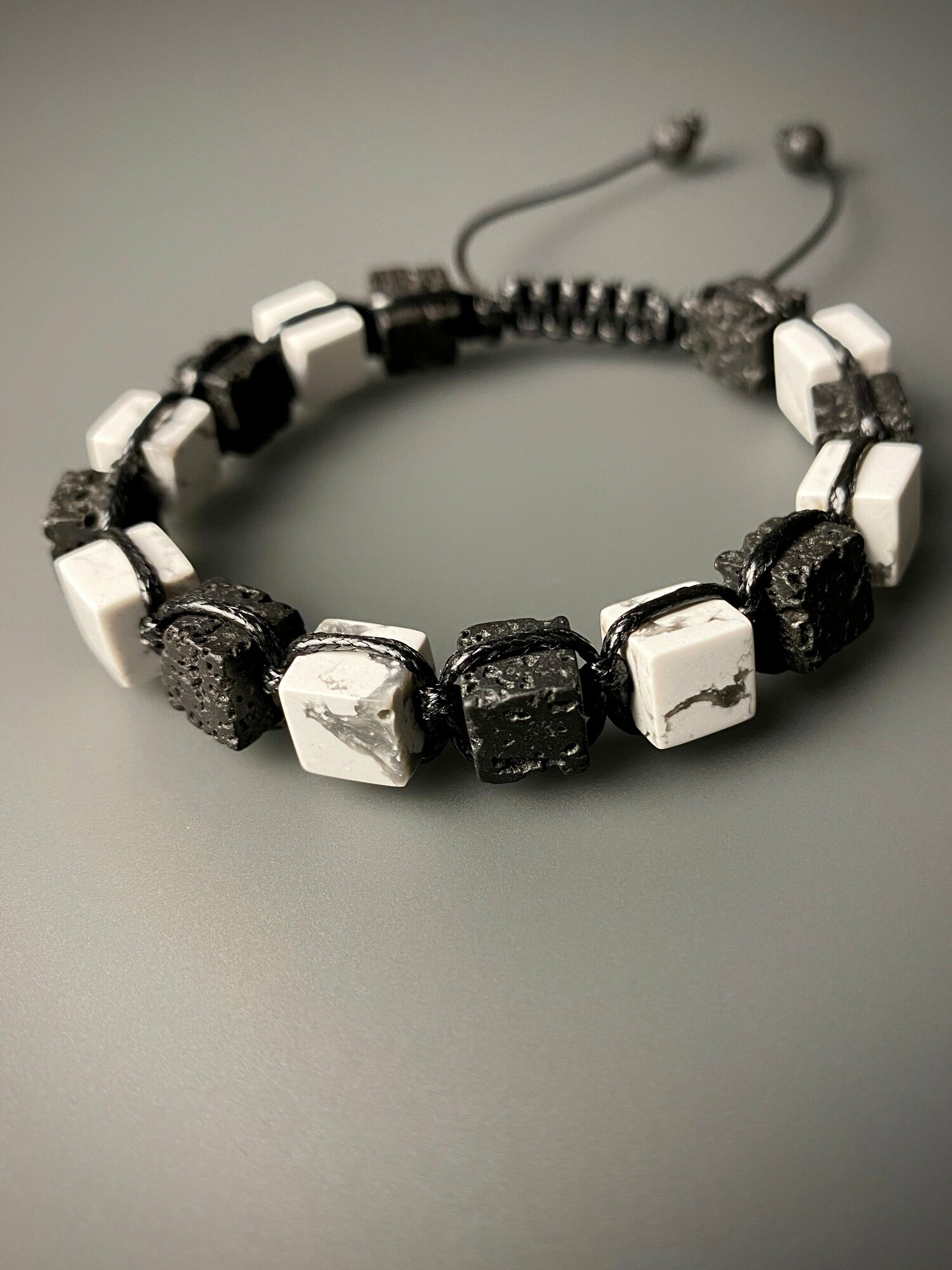 Браслет куб квадрат из натуральных камней мужской яшма и лава / плетеный шамбала