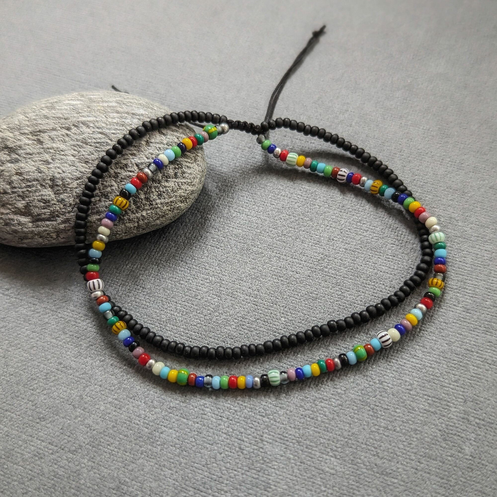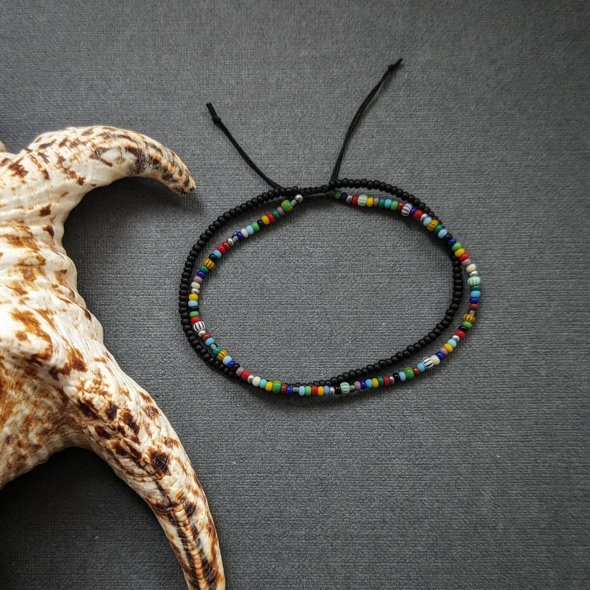 Купить мужской браслет нить с бисером регулируемый безразмерный