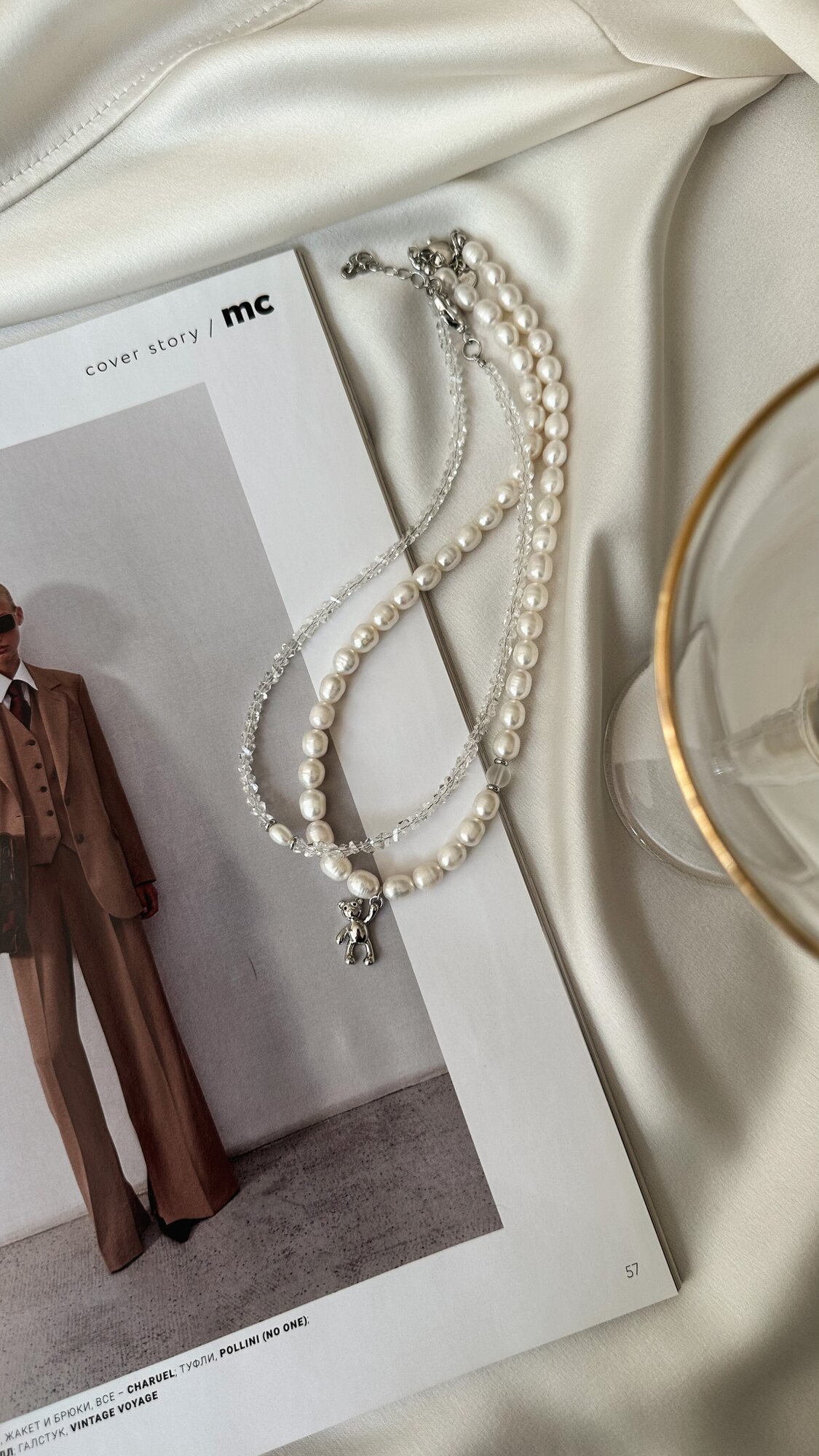 СохранитьКолье Mishka из натурального речного жемчуга с подвеской в форме мишки интересное:
