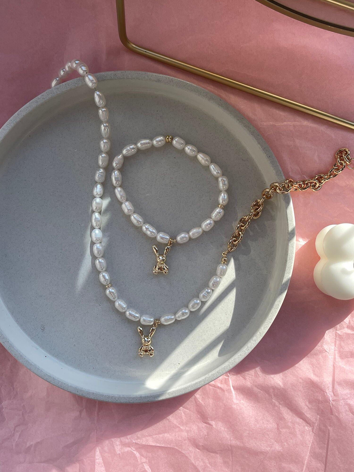 СохранитьКолье из натурального жемчуга и цепи с подвеской зайчиком Bunny интересное: