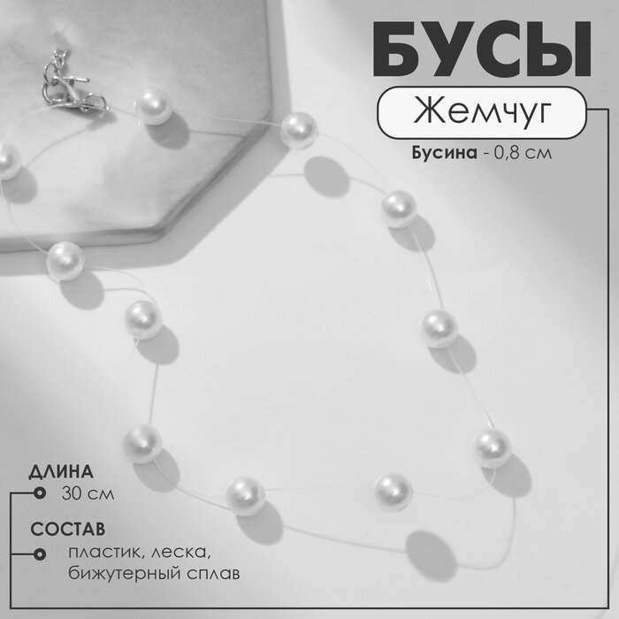 Бусы на леске «Жемчуг» шар №8, цвет белый в серебре, 30 см интересное:
