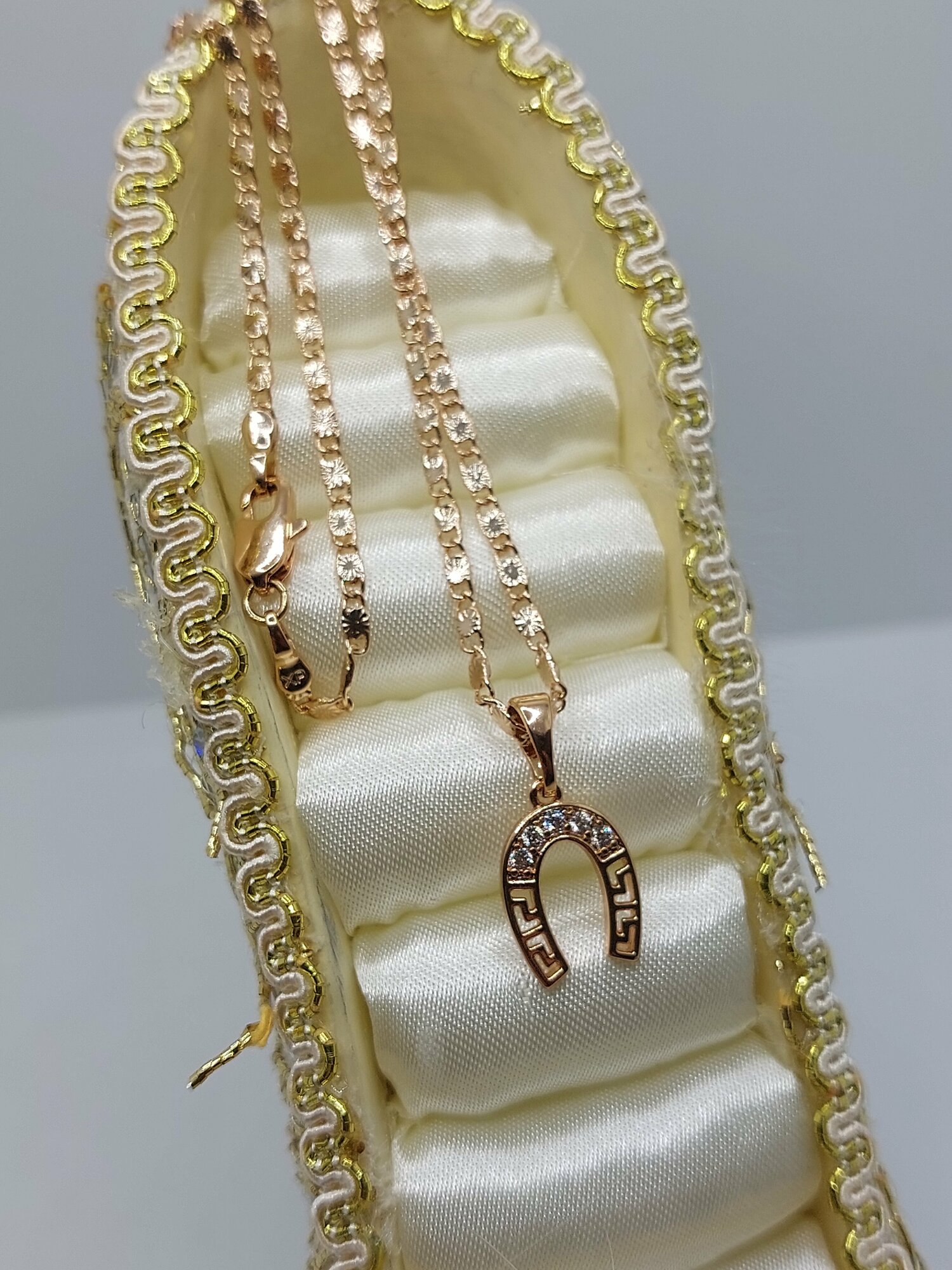 | Дополнительная информация | Набор цепочка и кулон подкова; цепь с подвеской подкова бижутерия; колье на шею с подвеской бижутерия; |