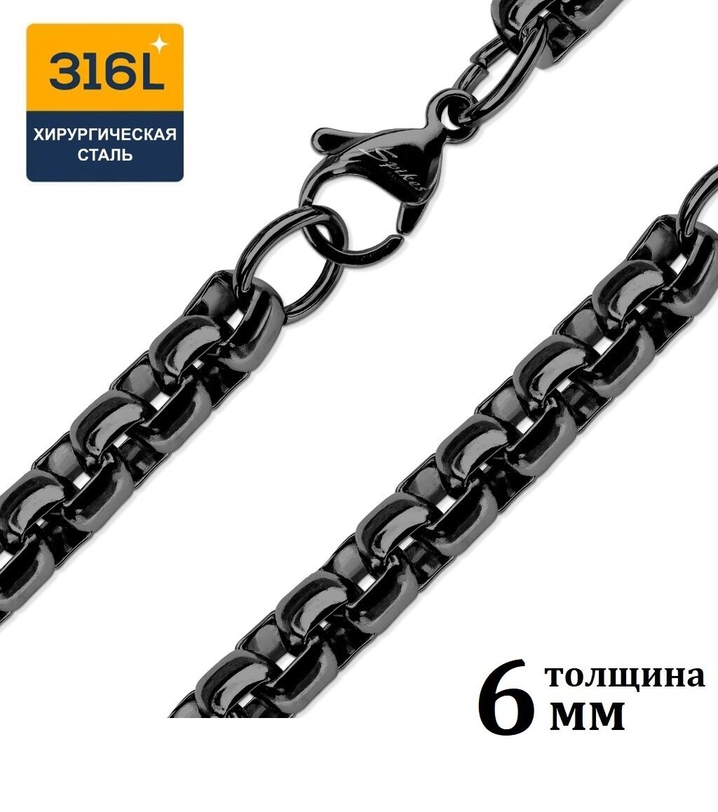 Цепочка на шею из ювелирной стали, плетение лобстер / Толщина 6 мм, длина 60 см