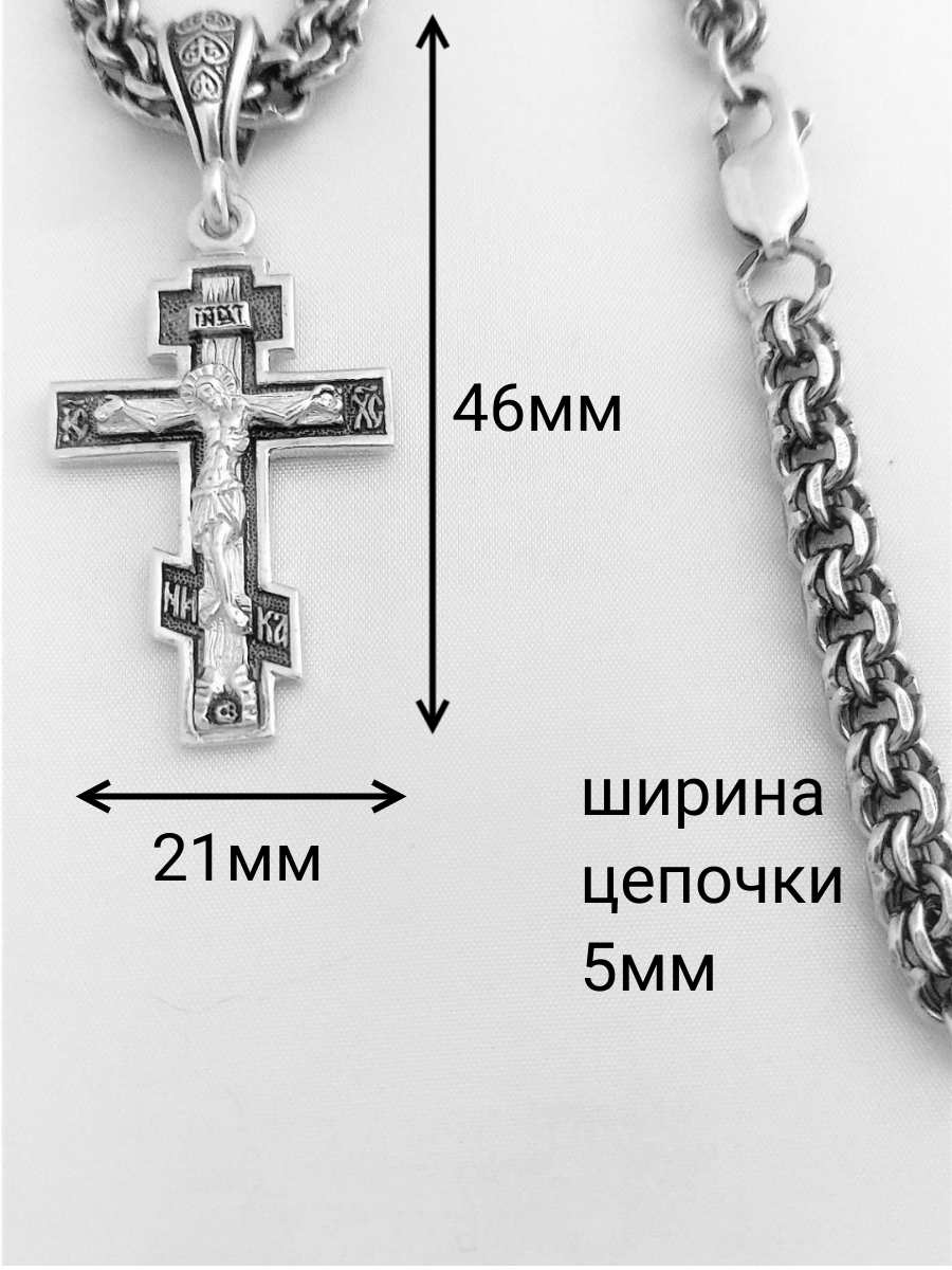 серебряная цепочка мужская Бисмарк с православным крестом 65см интересное: