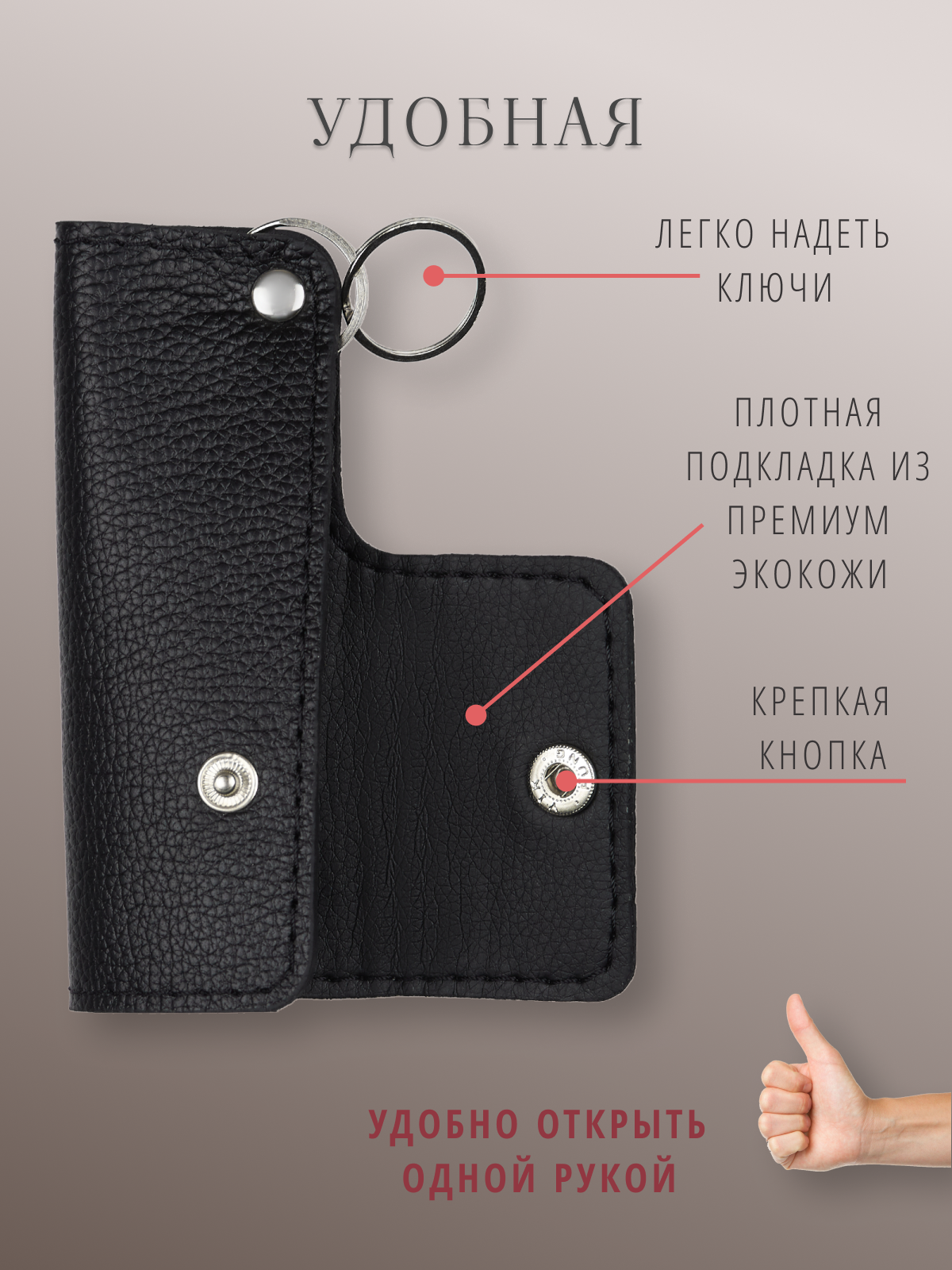 Ключница кожаная карманная чехол для ключей, черная флотер интересное: