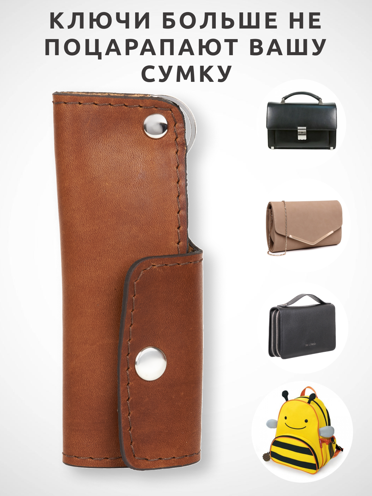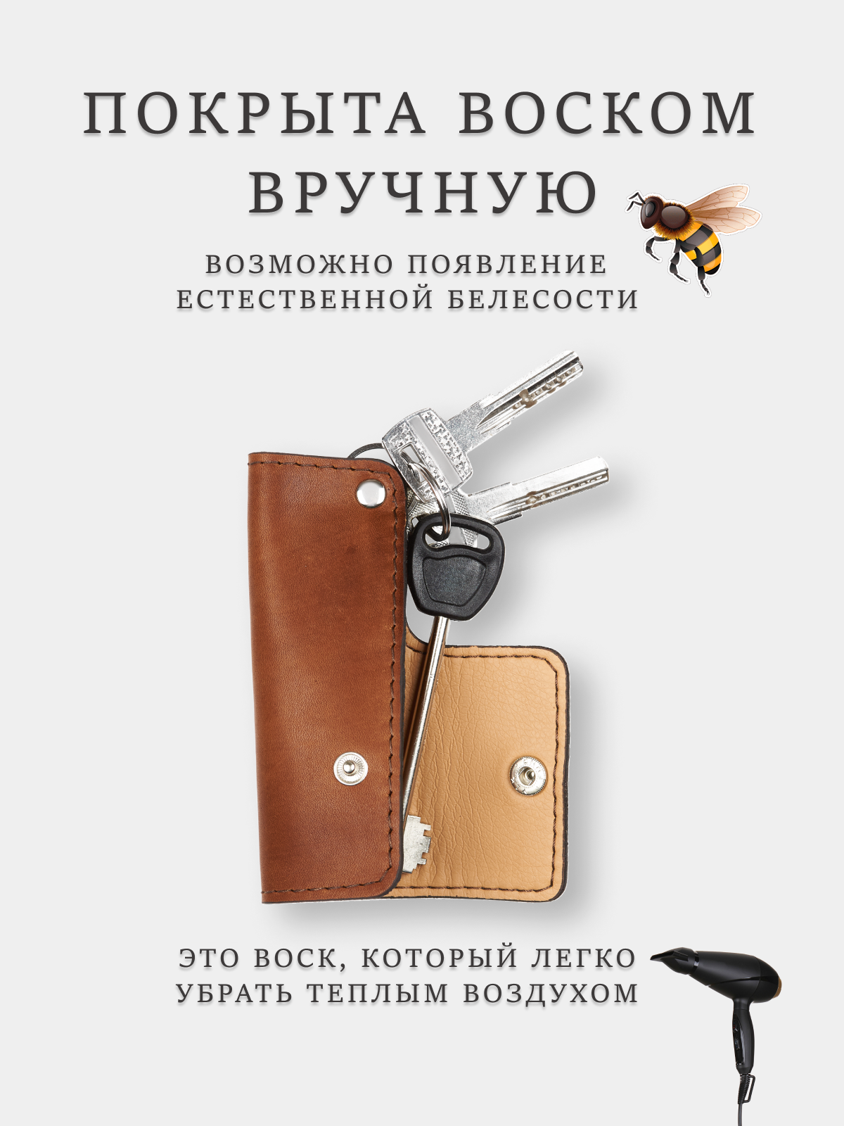 Ключница кожаная карманная чехол для ключей, рыжая интересное: