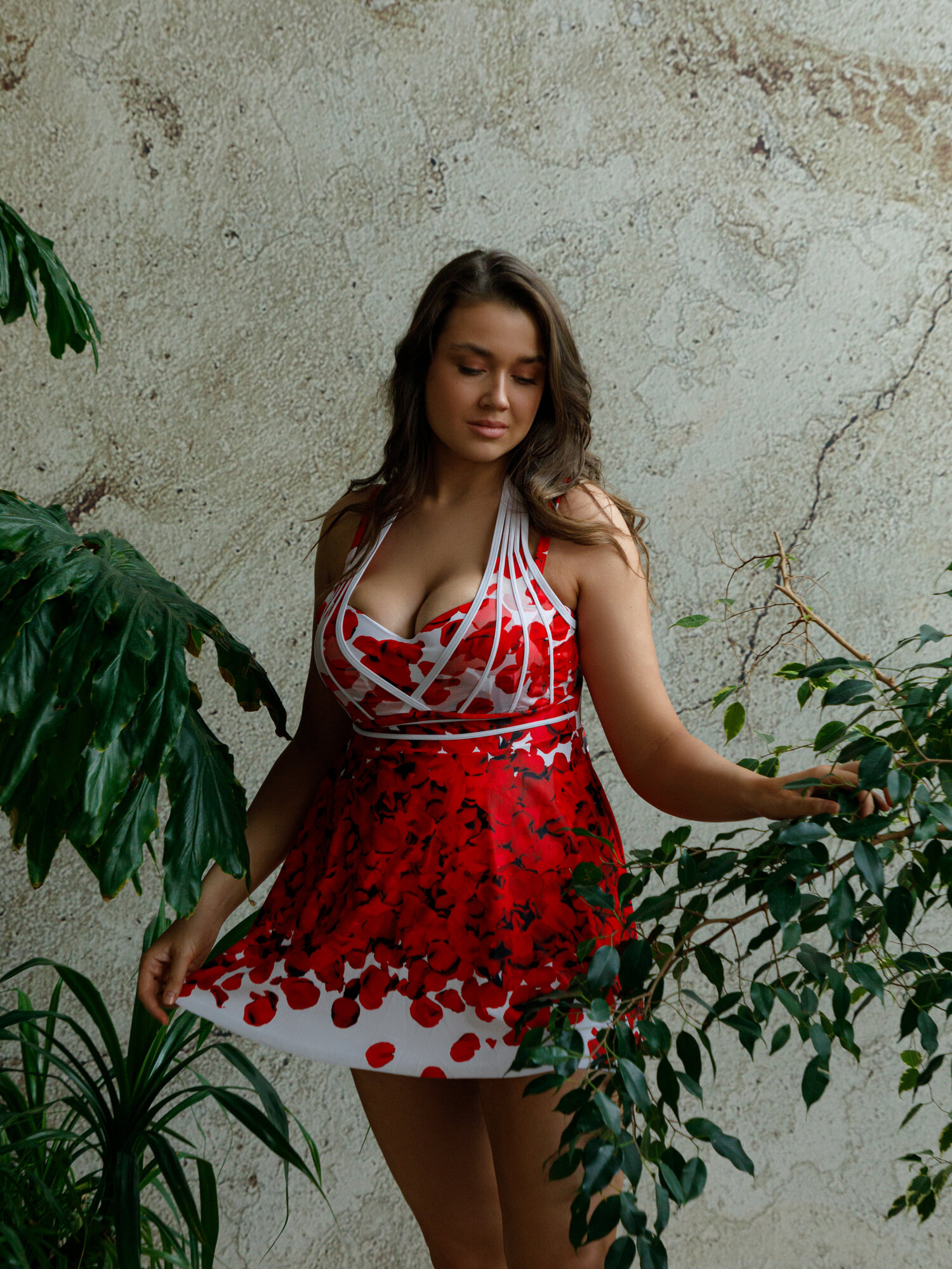 Танкини больших размеров с шортами MOZZITO, красно-белый, размер 54-56