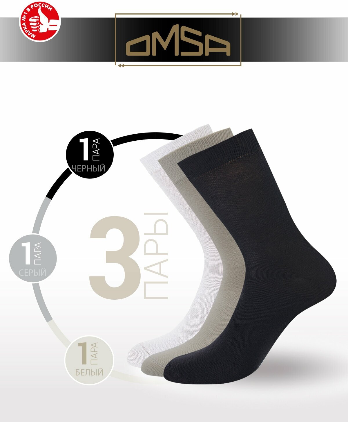 СохранитьНоски мужские OMSA ECO 401, высокие, комплект 3 шт, Цвет Nero/Grigio Chiaro/Bianco, Размер 39-41 (25-27) интересное: