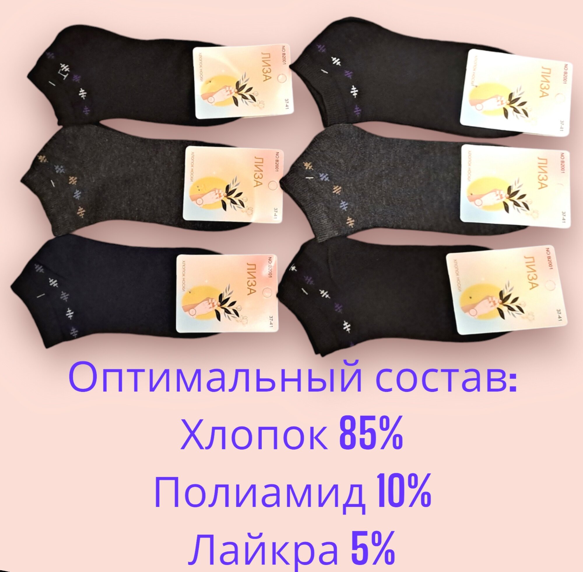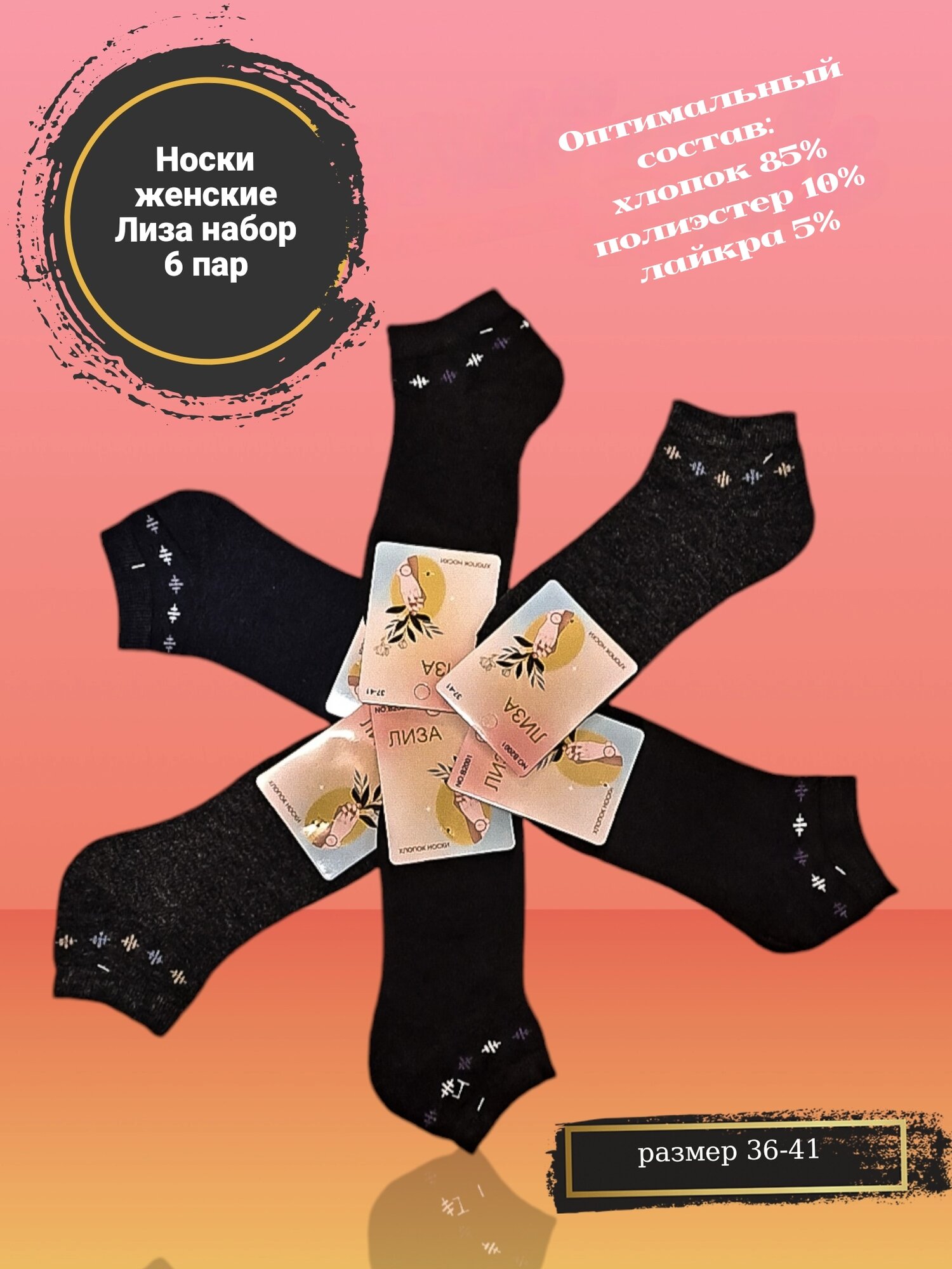 Носки женские Лиза, хлопок,набор 6 пар, размер 35-41