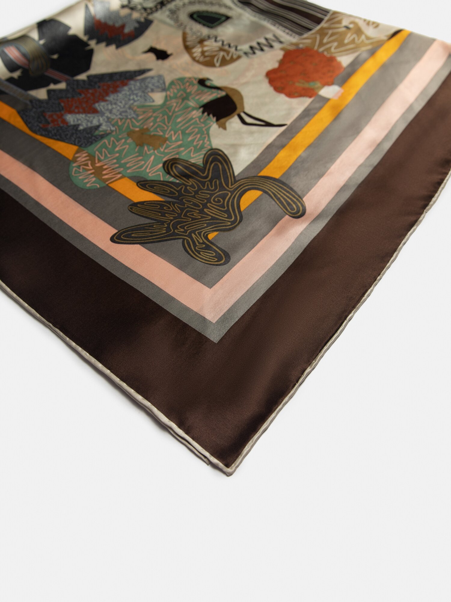 Купить Женский шелковый платок на шею палантин шарф коричневый GIN LAV