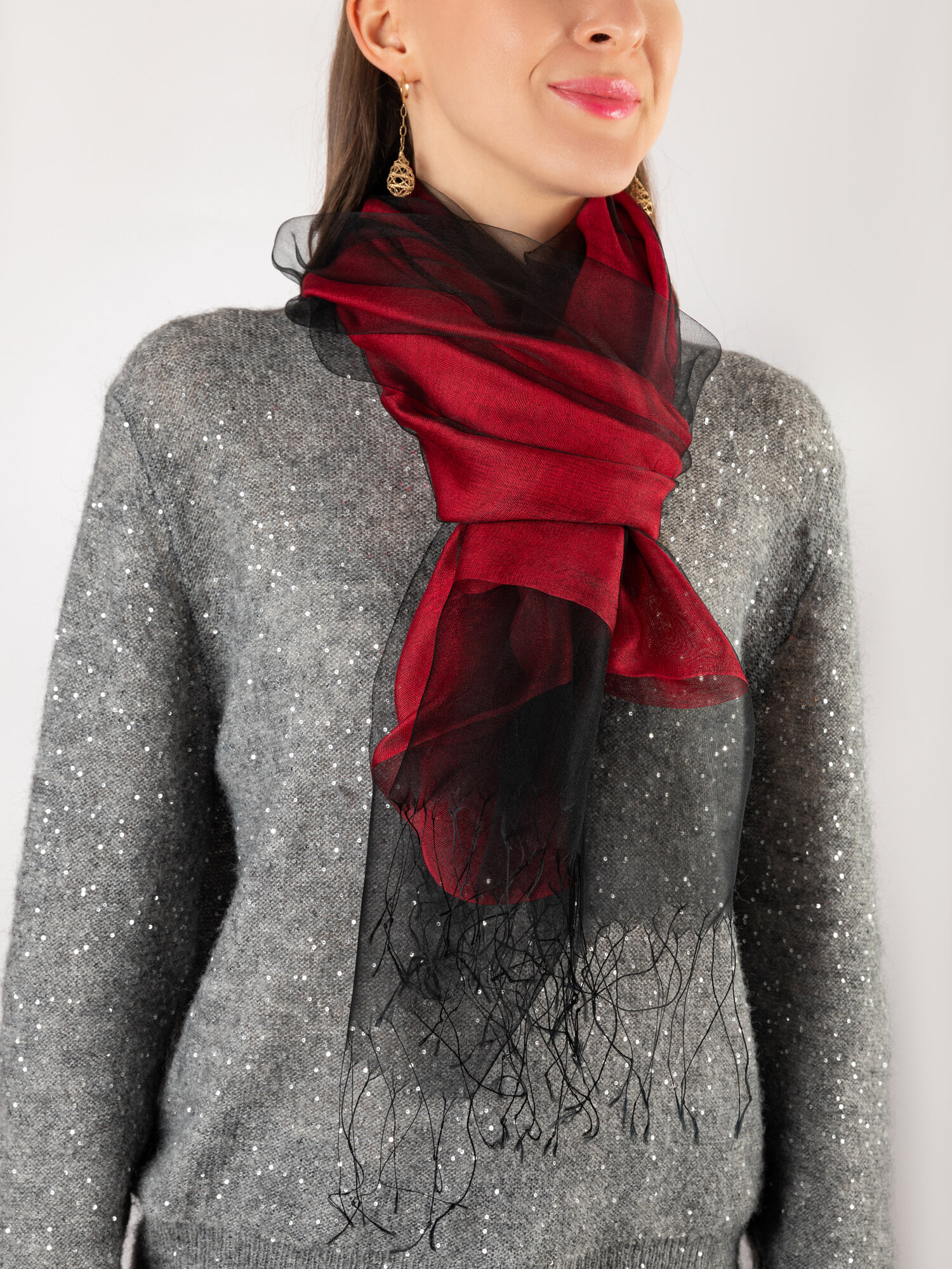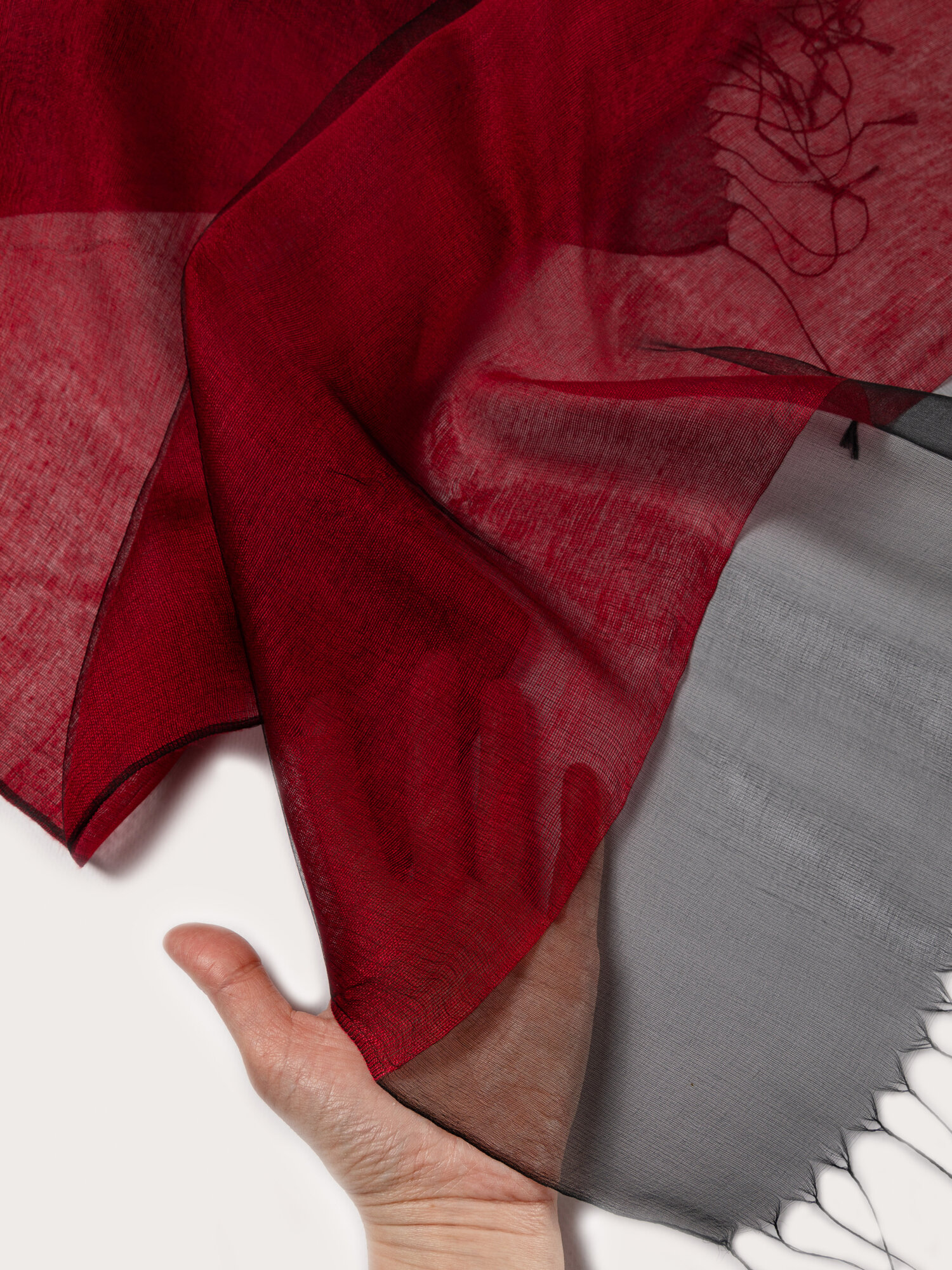 Купить Палантин "GIN LAV" 170 х 70см, черный/бордовый, натуральный шелк двойной