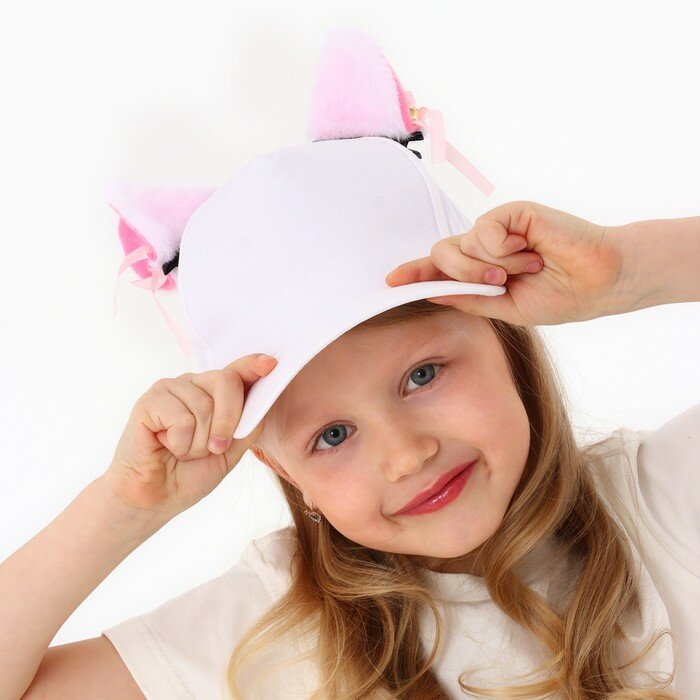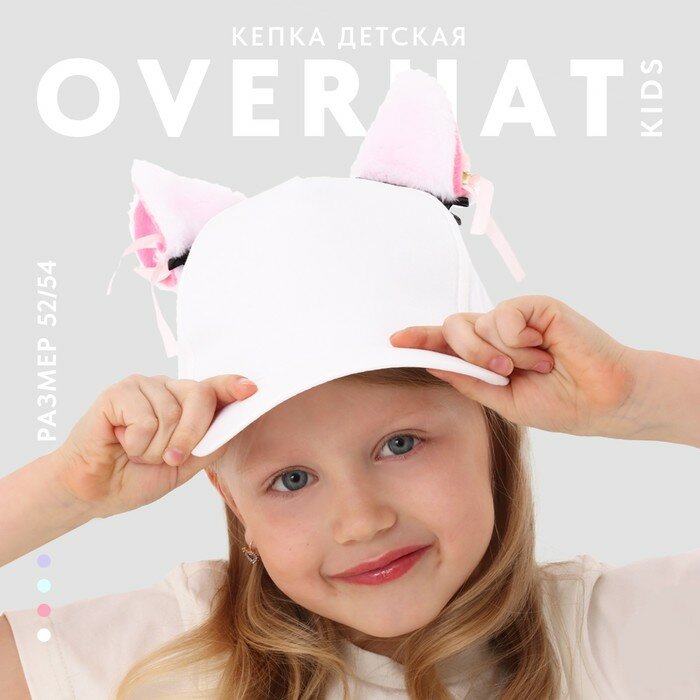 Купить Overhat kids Кепка детская для девочки "Кошечка" с ушками, цвет белый, р-р 52-54, 5-7 лет