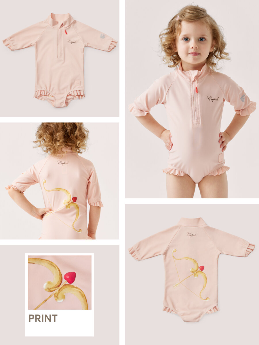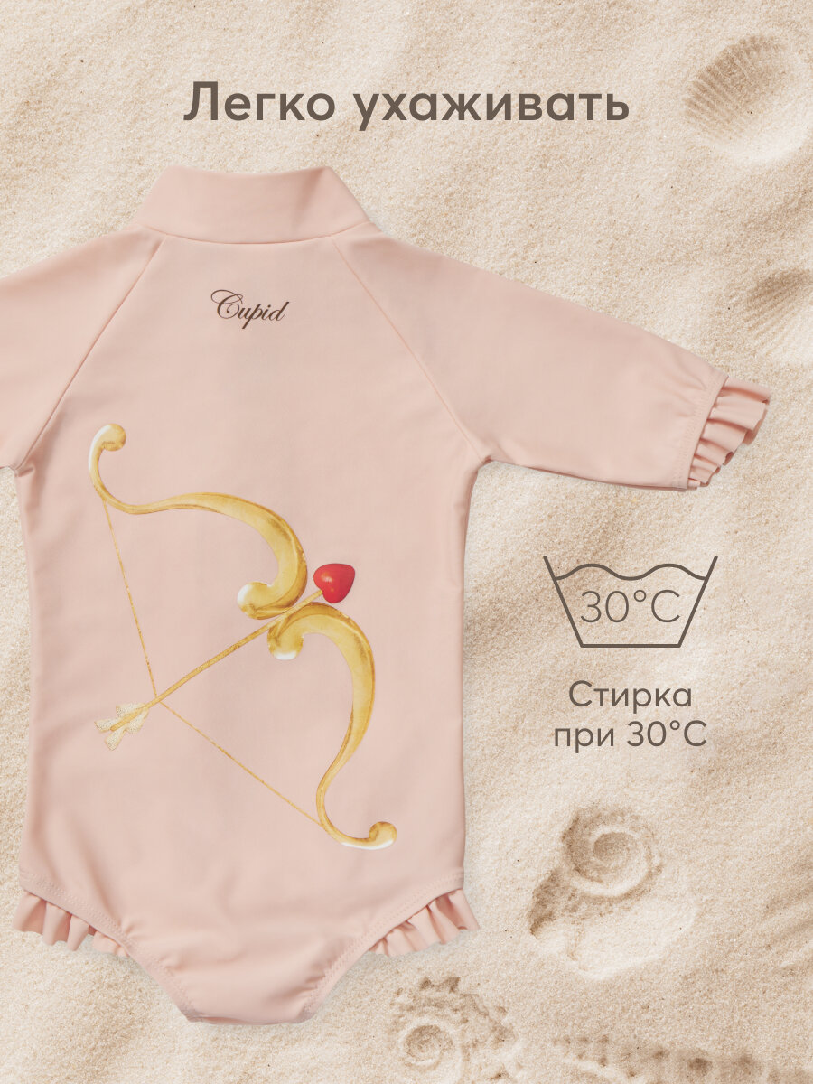Сохранить50657, Купальник слитный детский для девочек, защита от солнца UPF 50+ Happy Baby с длинным рукавом, на молнии, солнцезащита, розовый, 116-122 интересное:
