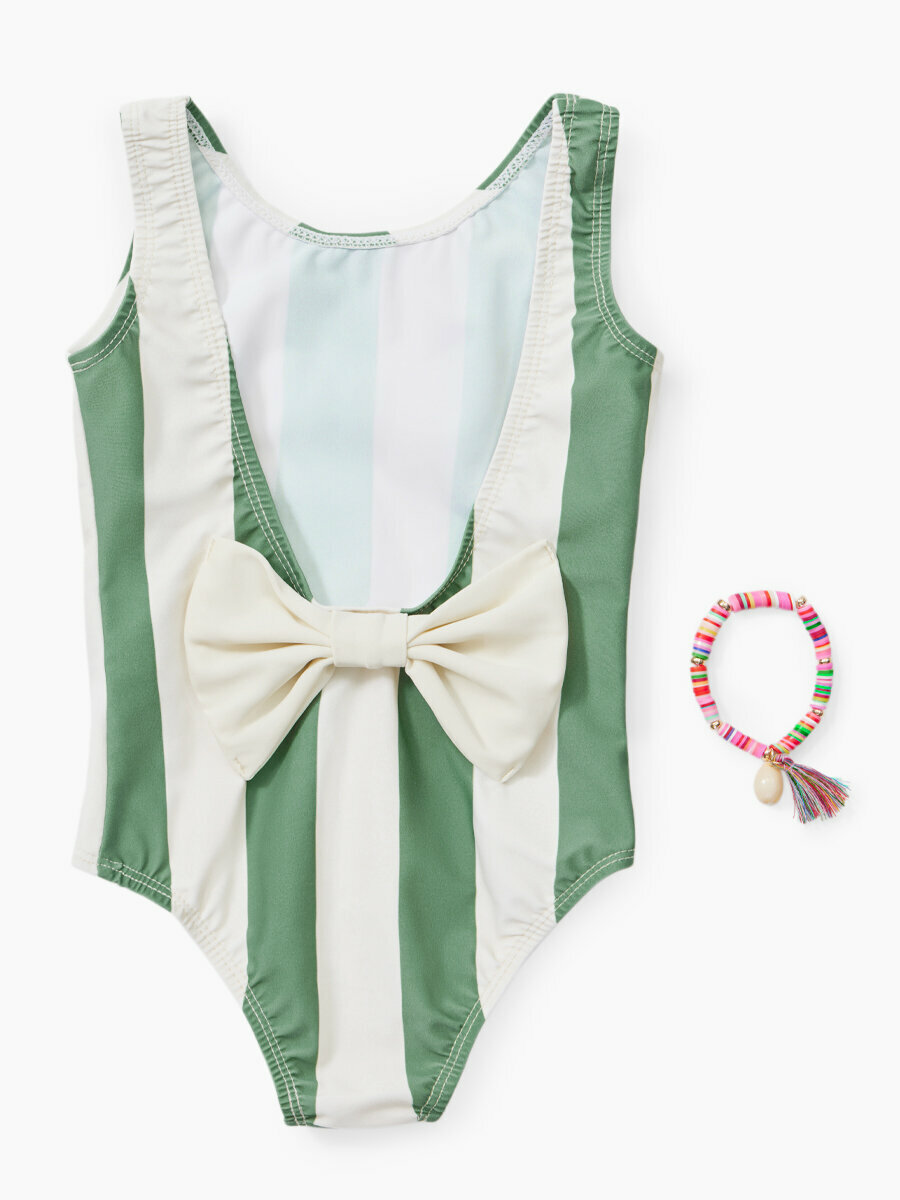 Купить 50658, Купальник детский для девочки Happy Baby, слитный с открытой спиной, для пляжа и для бассейна зеленый в полоску, размер 80-86