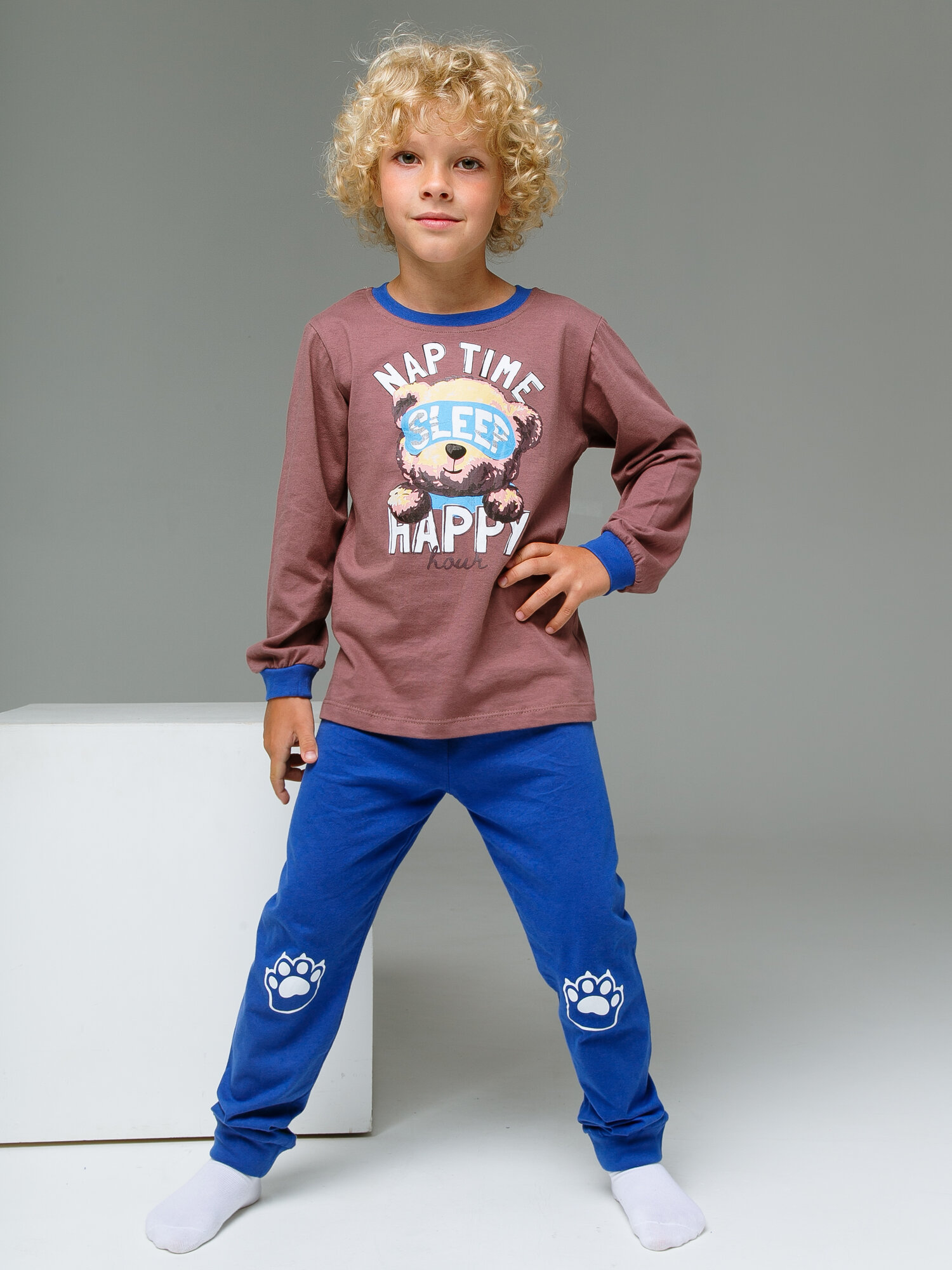 Пижама Ohana kids, размер 122, синий/коричневый