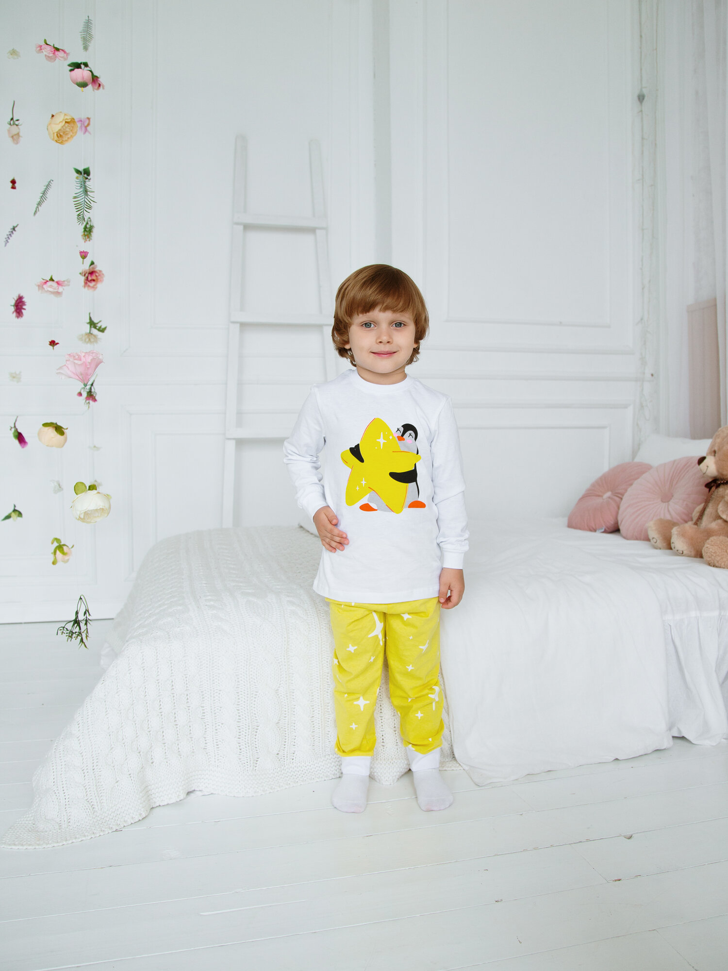 Пижама Ohana kids Девочкам и мальчикам, размер 122, белый/желтый