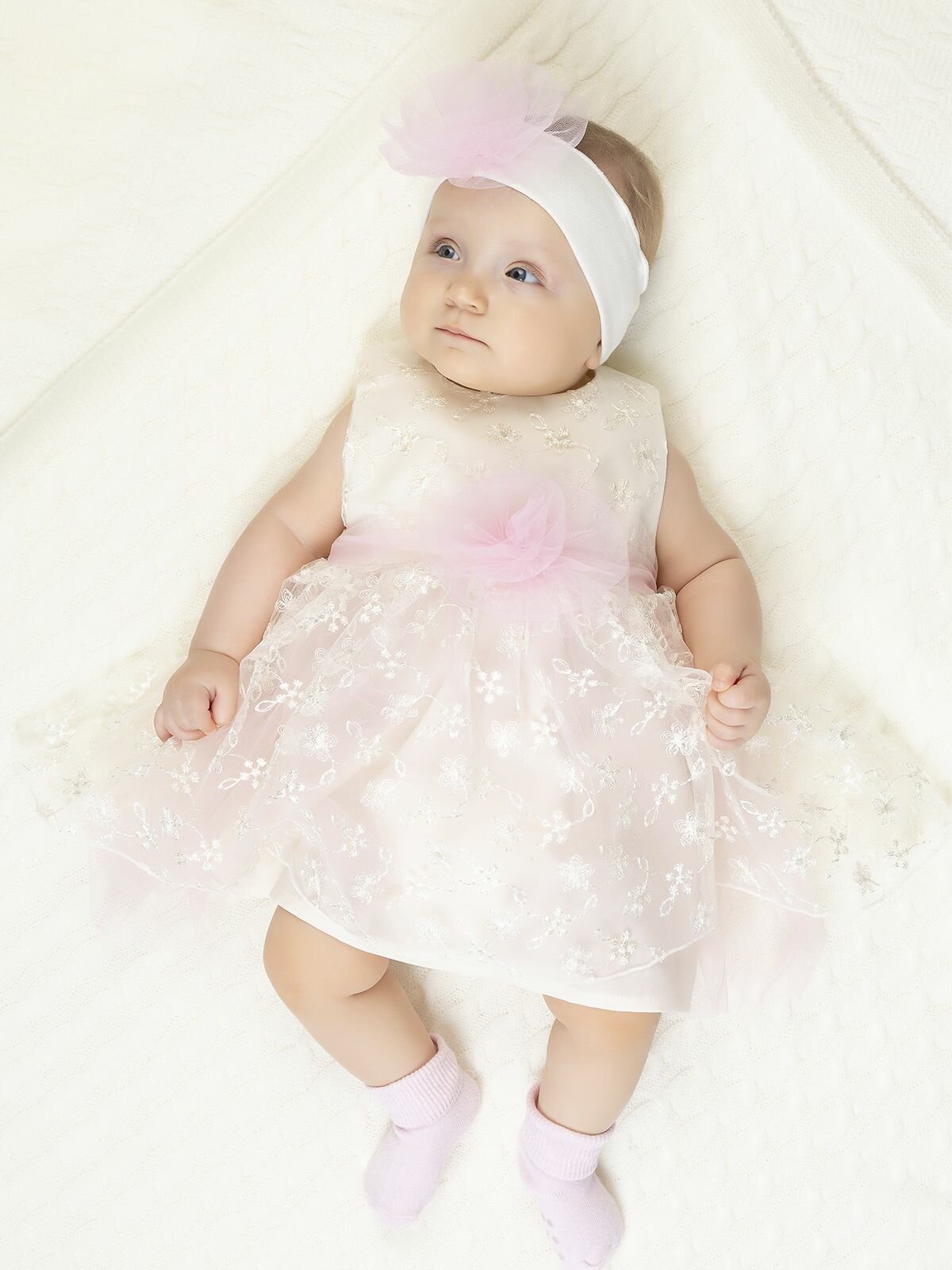 Платье для девочки Осьминожка нарядное и повязка на голову для девочки, цвет розовый, размер 68