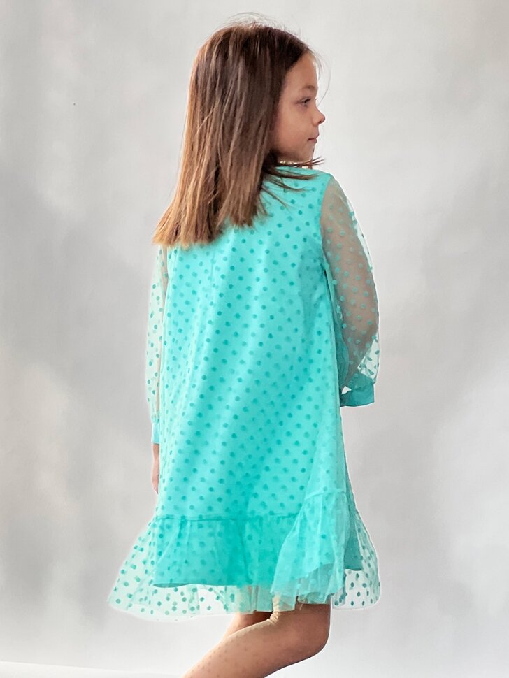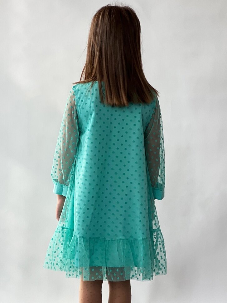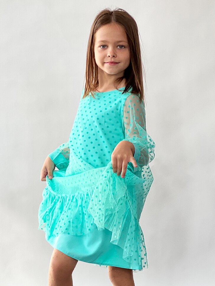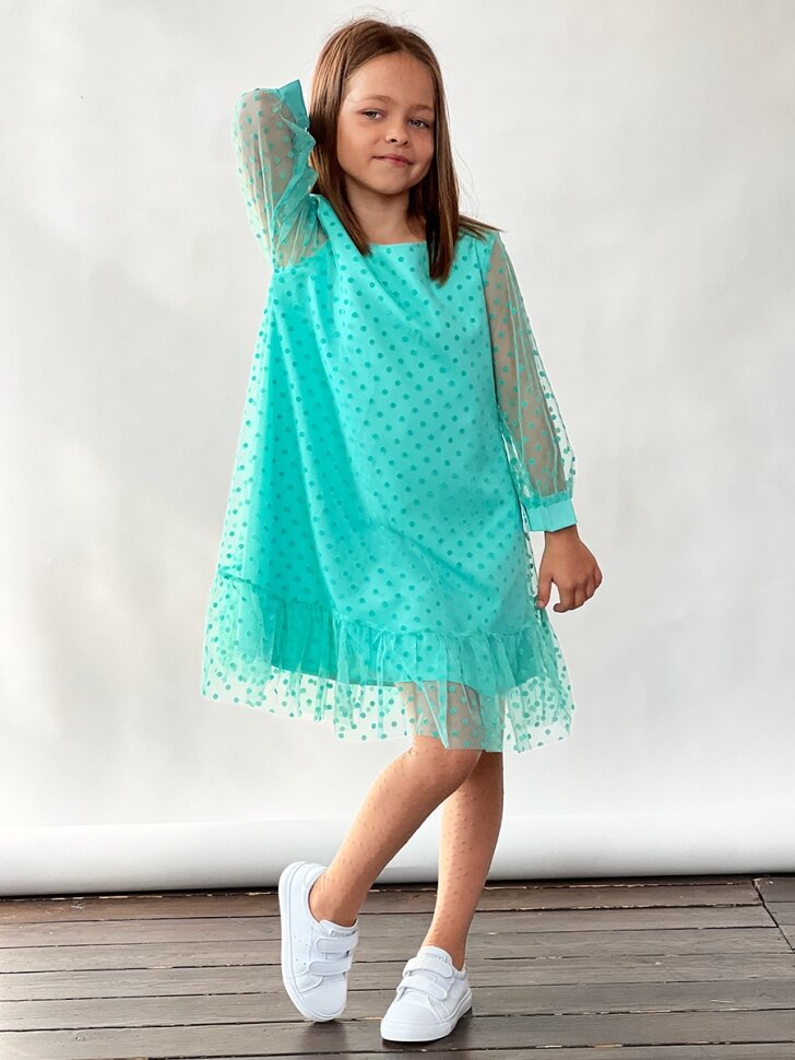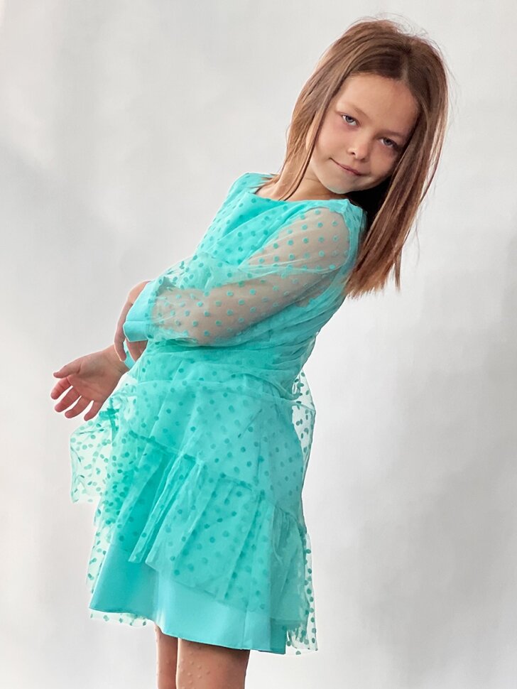 Платье для девочки нарядное бушон ST53, цвет изумрудный (128-134)