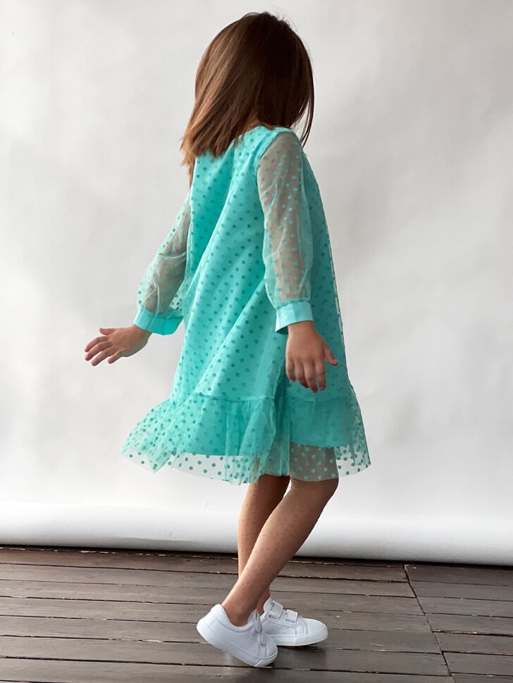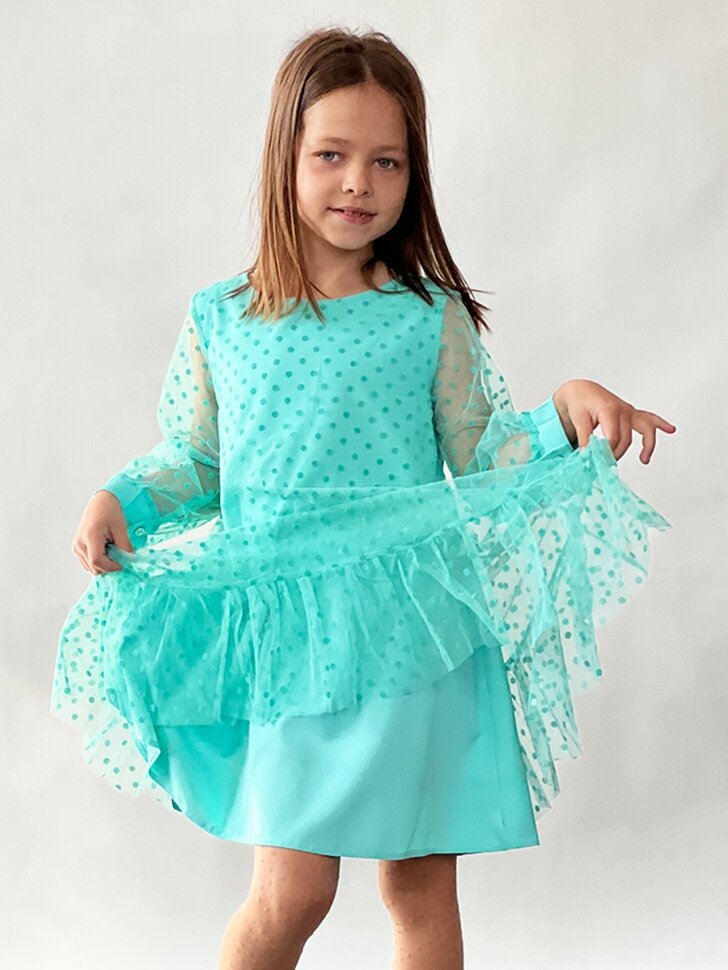 Платье для девочки нарядное бушон ST53, цвет голубой (128-134)