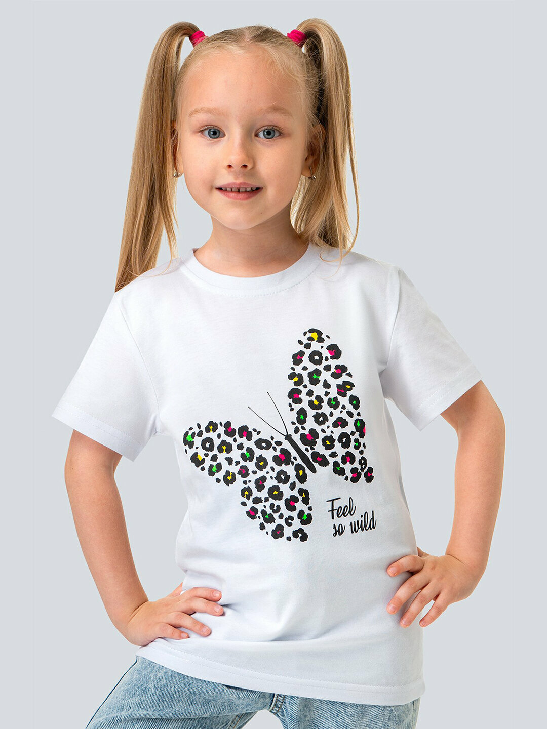 Футболка для девочки с принтом 100% хлопок HappyFox HF66031D бабочка.белый 128