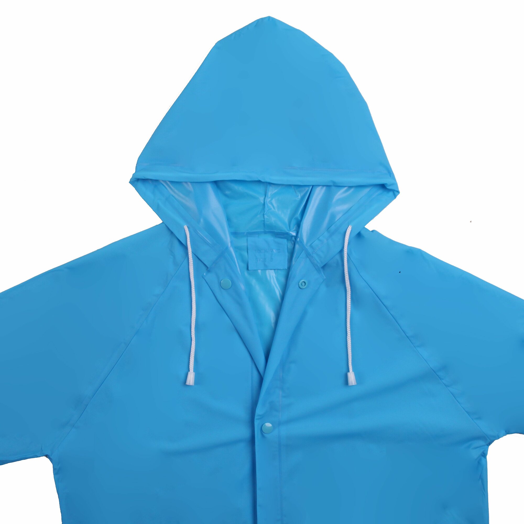 Дождевик детский (7-8 лет) голубой ПВХ с капюшоном (на кнопках) Komfi RAIN08 .