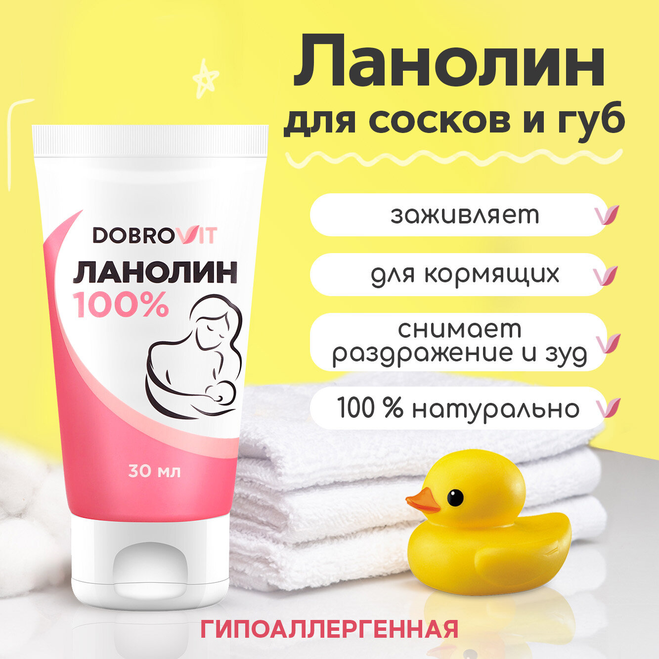 Dobrovit Ланолин 100% для гигиенического ухода за сосками, смягчение, восстановление и защита от трещин, 30 мл