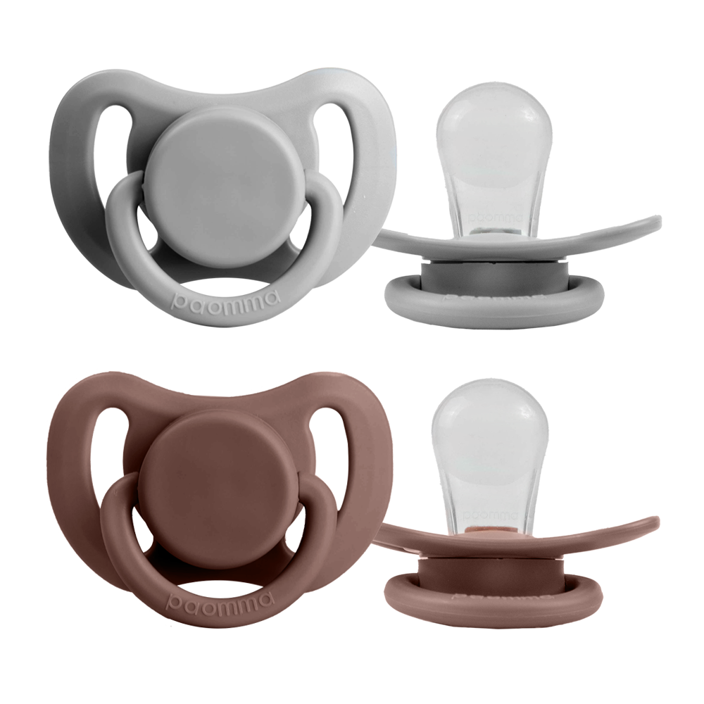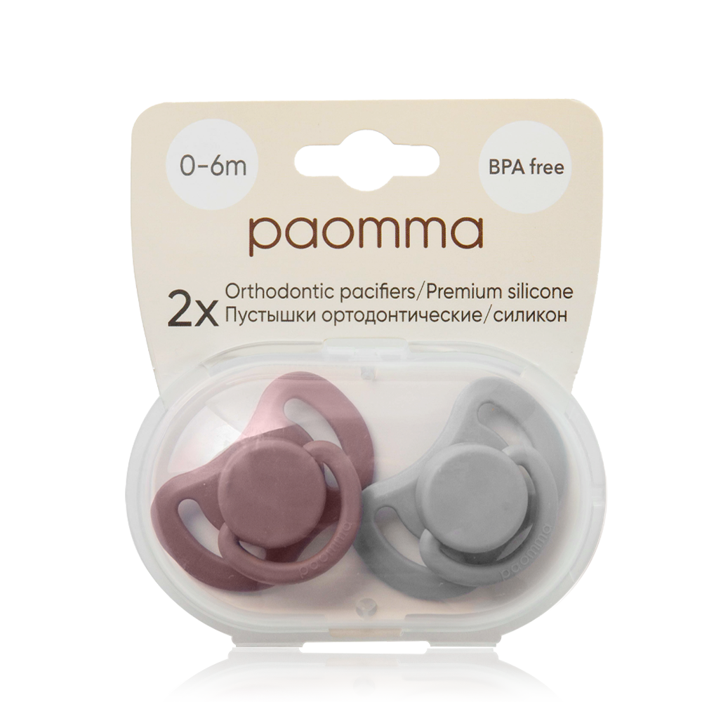 Купить Набор силиконовых пустышек Paomma 0-6 мес., 2 шт. в контейнере, taupe/light grey