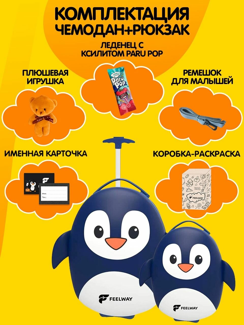 Маленький детский чемодан на колесах с рюкзаком, ручная кладь FEELWAY