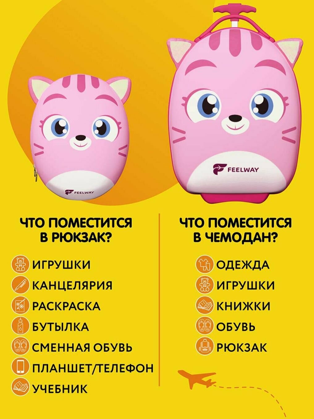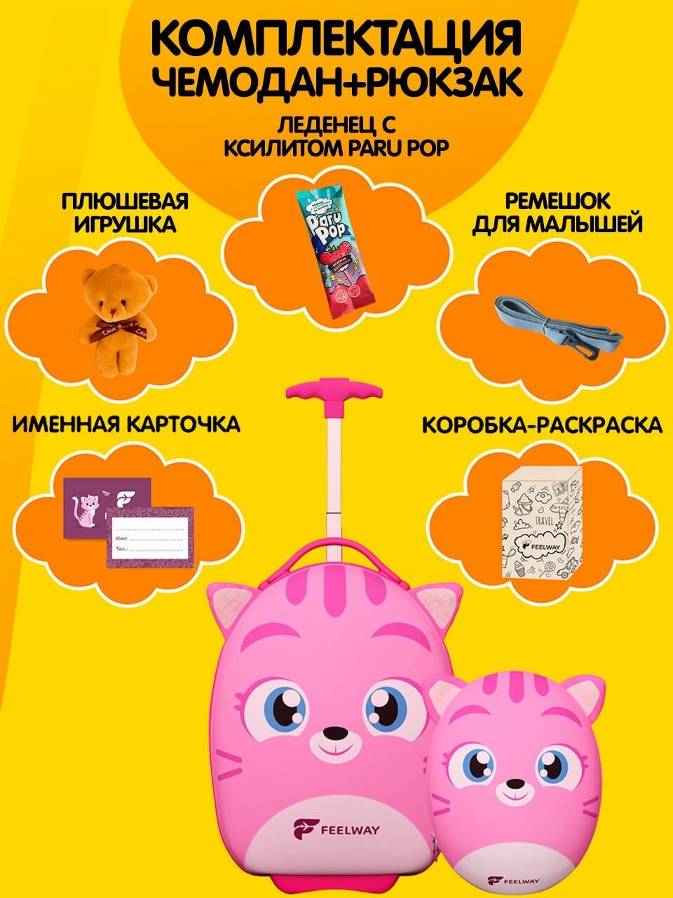 Детский чемодан на колесиках для девочек ручная кладь Чемодан с рюкзаком для детей FEELWAY интересное: