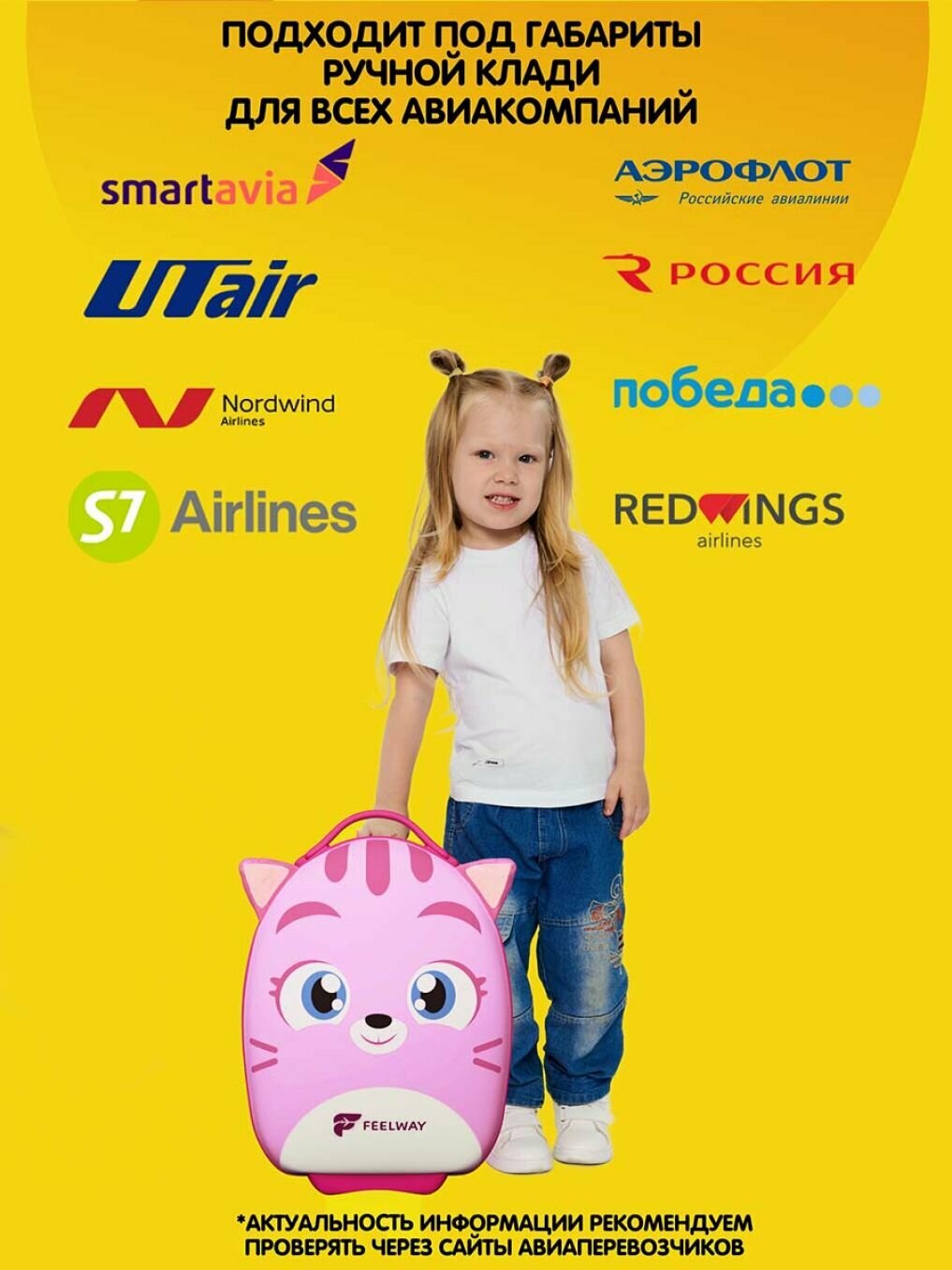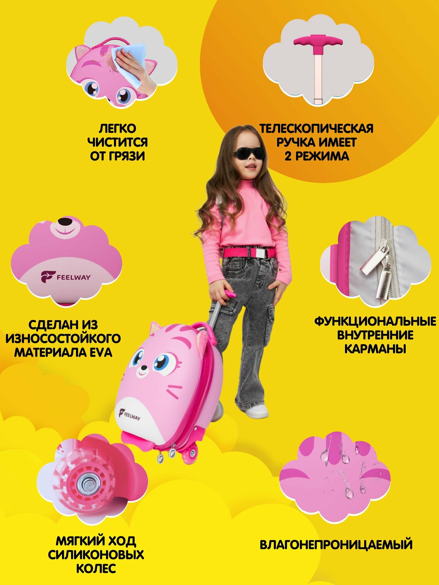 Купить Детский чемодан на колесиках для девочек ручная кладь Чемодан с рюкзаком для детей FEELWAY