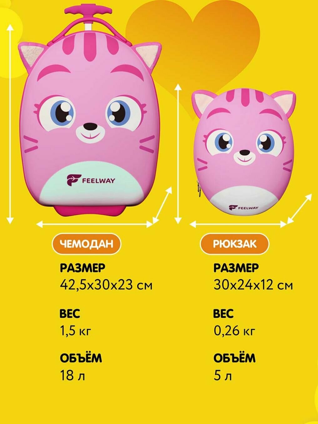 Маленький детский чемодан на колесах с рюкзаком, ручная кладь FEELWAY