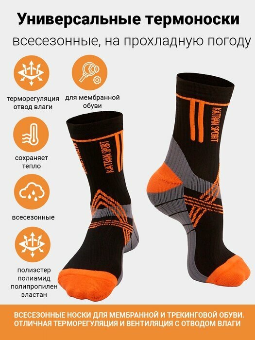 Купить Треккинговые термоноски для туризма для похода демисезонные Katran Т-178о (черный, оранжевый), Размер: 38-40